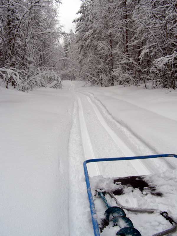 На фото финишный подъезд к нашей хижине. Время почти 3 часа ночи.