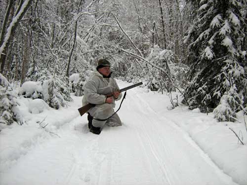 В субботу - в минус 25 - дичь плотно сидела в самых крепях. На одной дорожке на снегу увидел свежий след глухаря. Стал топтать. Увидел глухаря метрах в 70 от себя. Сбоку, в просвете деревов... Стал его обходить, но как говориться... :) Нашел место взлета, в 50 метрах от места где глухарик был замечен...