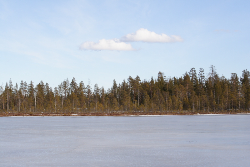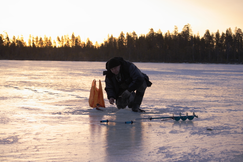 10 лунок сверлит Леха. 10 лунок сверлю я. Солнце светит, красота, тепло, ветер умеренный. Вот два облачка мимо проплыли. Потом небольшие хозяйственные работы, установка грибка на трубу. Совет чего делать дальше. Учитывая, как мы сюда заехали, решили тогда изменить программу, не гонять машину и разведать получше лес поблизости. Тем более, предпосылки и наблюдения в осеннее время были оптимистичны. Сначала предполагалось, что попробуем сходить на подслух, но, как потом оказалось, правильно сделали, что не пошли.