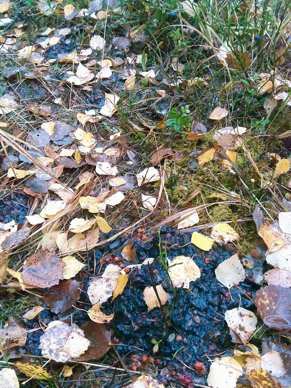 Заехали еще в одно место. Был там последний раз года три-четыре назад за грибами. Прошли с километр и свернули на старый ус. Почти сразу же снялась и улетела копалуха. Чуть дальше еще видели глухаря, по ходу молодой петух. На тропе остатки содержимого медвежьего пищеварения. Еще прошли немного медвежий след. Отпечаток нечеткий. Чен чего-то просек и рванул на болотце, метрах в семидясети притормозил и замер. Зову его, не хочет, а за болотцем кто-то нехило хрустнул. Еще раз позвал собаку и бахнул в воздух. Мишкино добро на тропе, след, напрягшаяся собака, треск. На всякий вставил пулевые и пошли в обратную сторону. Отошли двести-триста метров, поменял обратно на дробовые. Встретили на обратном пути еще глухаря, сидел на дереве на «выстреле». Вскидываюсь, взвожу курок, глухарь уже срывается с дерева, и стреляю практически с ходу т.к. дистанция приличная. Промах. А время меж тем уже к пяти, к шести уже на мероприятии быть надобно. Все-таки время в лесу пролетает мгновенно. Еще одна лесная прогулка прошла без последствий для пернатых лесных жителей, но с приятными впечатлениями для лесных гостей - «прогульшиков».