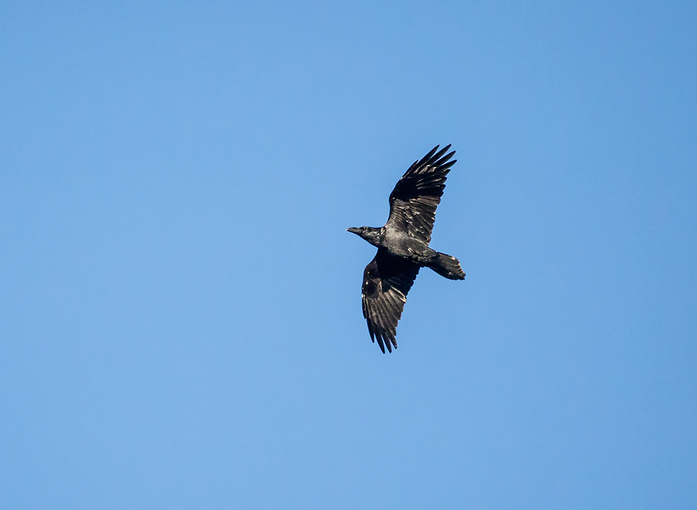 Когда я вышел на проселочную дорогу - сверху меня поприветствовал старый друг - ворон старик, что уже не в первый раз присматривает за моими вылазками в лес.