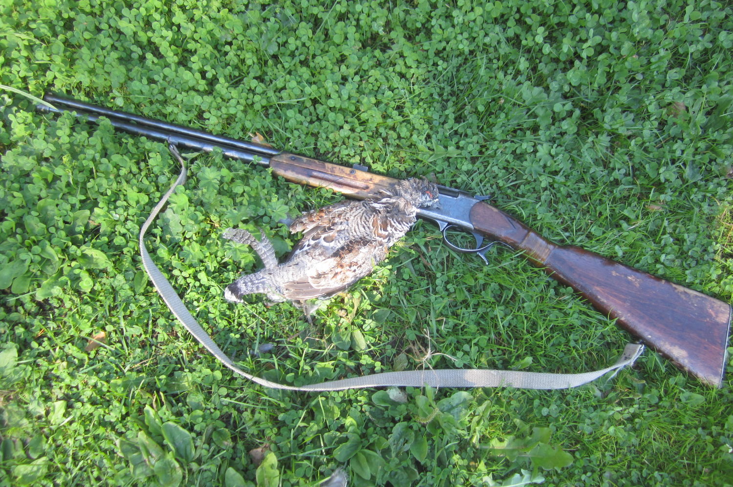 Мужики, дайте похвастаться! Добыт первый рябчик новым (1958 г.в.) ружьем "Белка". Класс! С него наверное можно одной рукой, как с пистолета стрелять! Отдачи почти нет. Бил с тридцати метров, семеркой. Рябчики пока редко подают голос. Рано еще. Начнут через пару недель по парам тусоваться. Будет поинтересней.