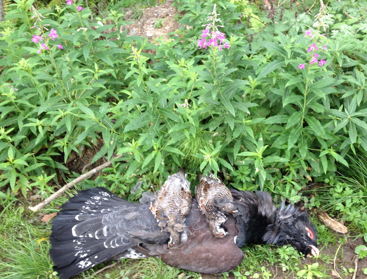 Рябчики еще не активные – слишком тепло. Удалось подманить четырех, двух добыл, а два других подсаживались в слишком густые кроны прямо над головой и остались невредимы.