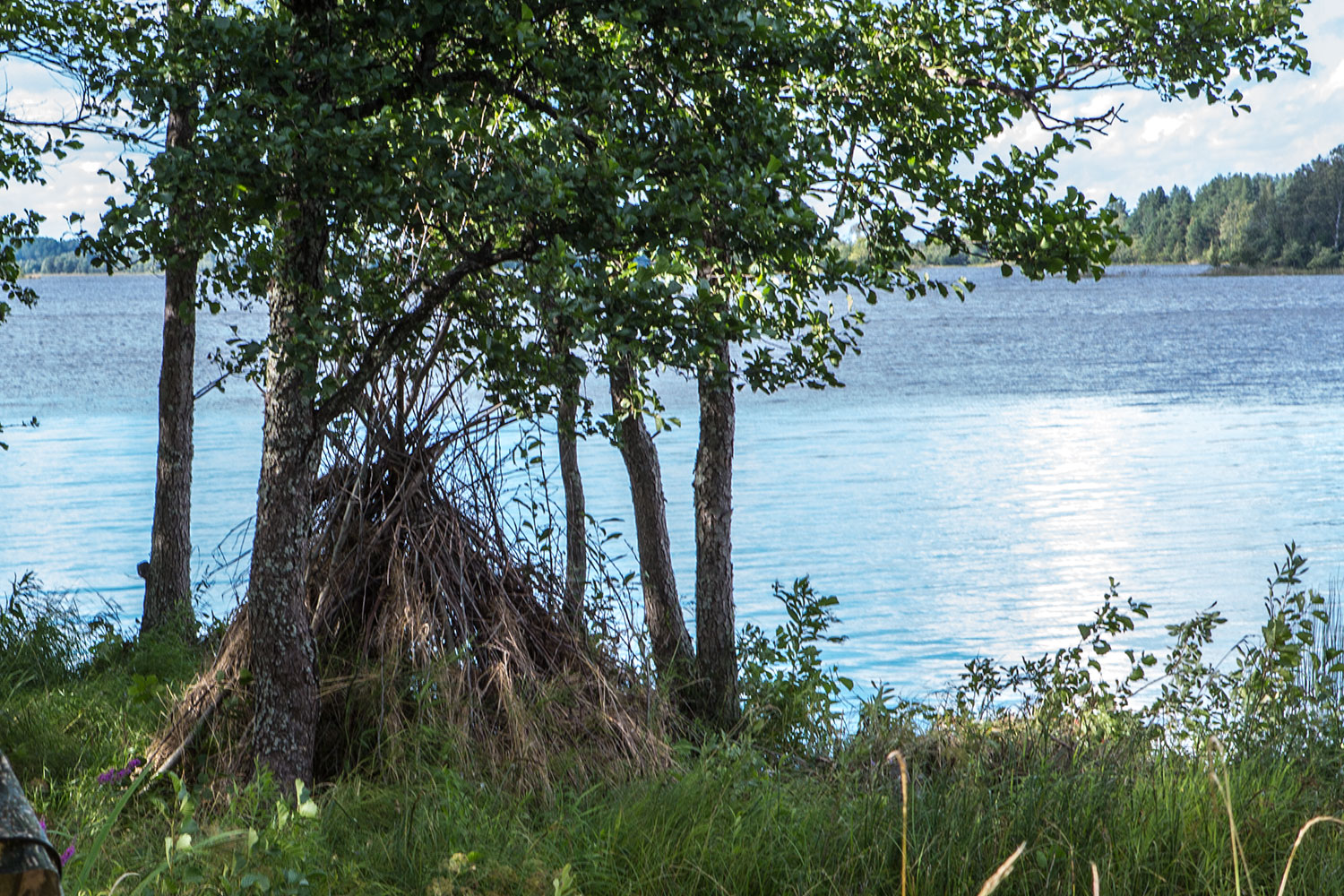 Нам повезло быть первопроходцами и своими глазами увидеть новый маршрут по острову Кижи. Начало тропы на северном краю острова. Идти туда не близко и дорожка туда не простая - сапоги от влажных тропинок и от змей - рекомендованы. Детальную лекцию пересказывать не буду. За деталями и секретами - добро пожаловать на остров. Но фоторяд с охотничьей тропы покажу.