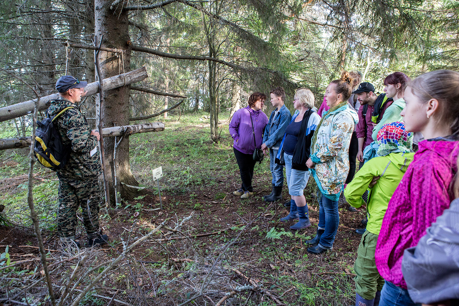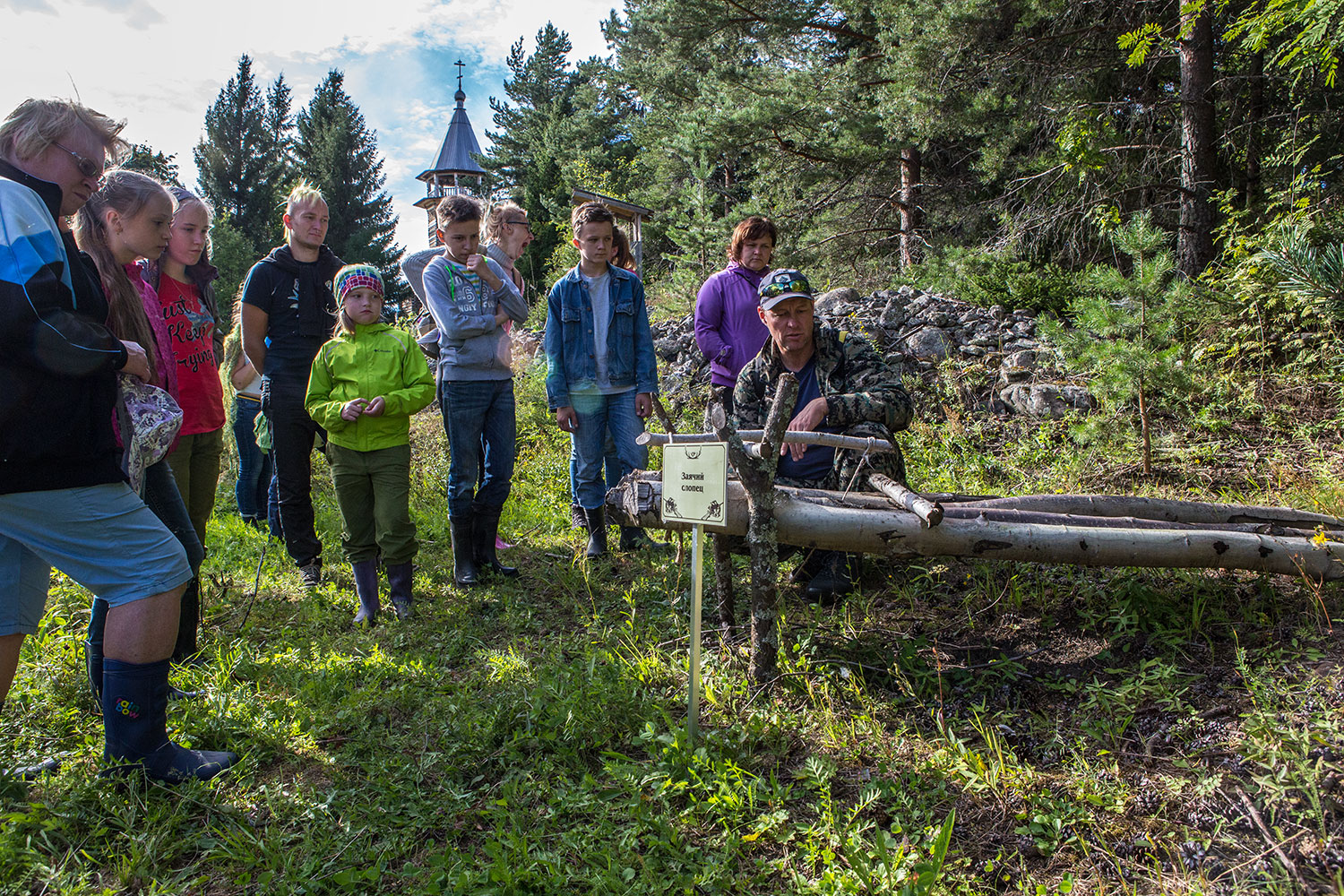 Кое-кто из экскурсантов очень хочет испытать себя в роли куницы... Капкан для этого готов. Подайте пальчик!
