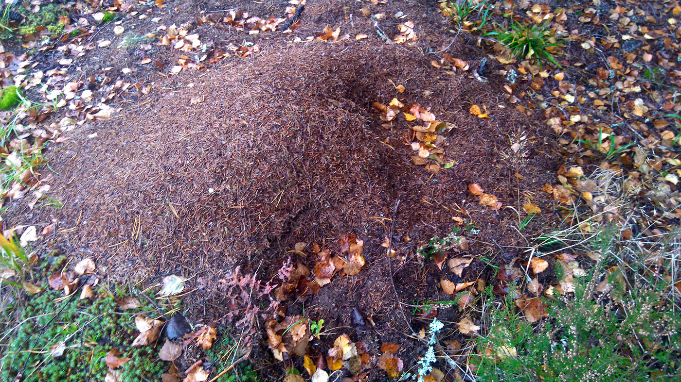 И вот, кстати, яркий пример - что порхалище птички делают не только в песочке или на каком-грубом грунте (хвоя старая и т.д.), но и на муравейниках. Здесь давно птички устраивают баню. Свежее порхалище "земляное" и рядом старое - "муравейниковое".