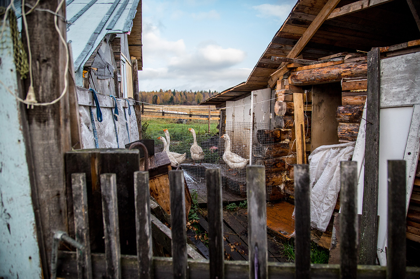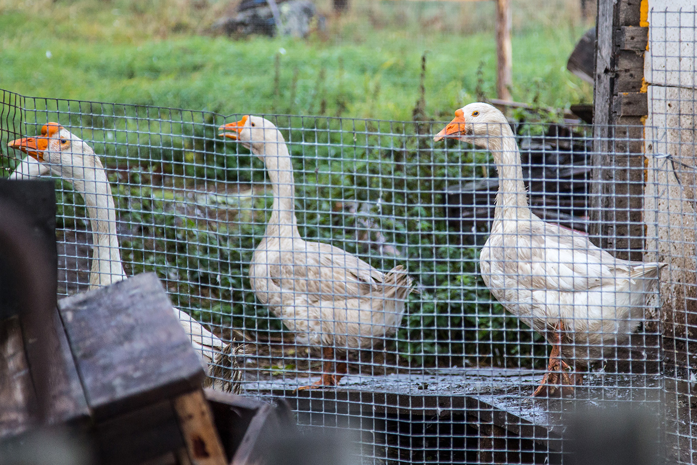 Все животные живут достаточно компактно. Но при этом могут выйти погулять в огороженный дворик. Гуси сильно переживали, что незнакомец ходит рядом и щелкает на них фотокамерой.