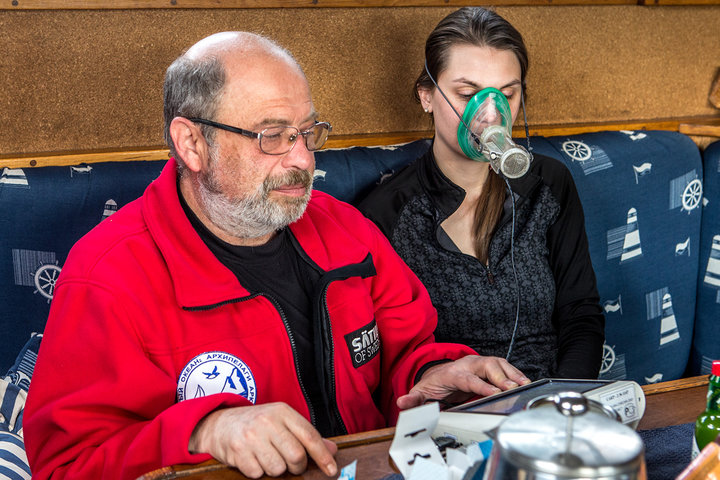 Кто-то стоит на вахте - следит за ветром и курсом яхты. А профессор Михаил Юрьевич Карганов - с первых минут выхода в море ведет кропотливую работу по влиянию Арктики на людей. На его докторском столе первый испытуемый - Катя Гиршович - единственная девушка на борту - наш обаятельный и заботливый кок.