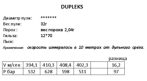 Gav писал(а):Вроде как эти пульки появились в Москве, прошли сертификацию. Иванов Михаил (рационализатор, назвать изобретателем язык не поворачивается) предоставил табличку отстрела пулек на баллистическом стволе.См. прикрепл. файл.Согласно табличке, пулять можно со стволов 12х70 рассчитанных на небольшое давление(то бишь немагнум).Таблица получена с патронов продающихся в " Охотнике на Сколковском ", т.е. с заводских патронов по цене 140руб. за патрон