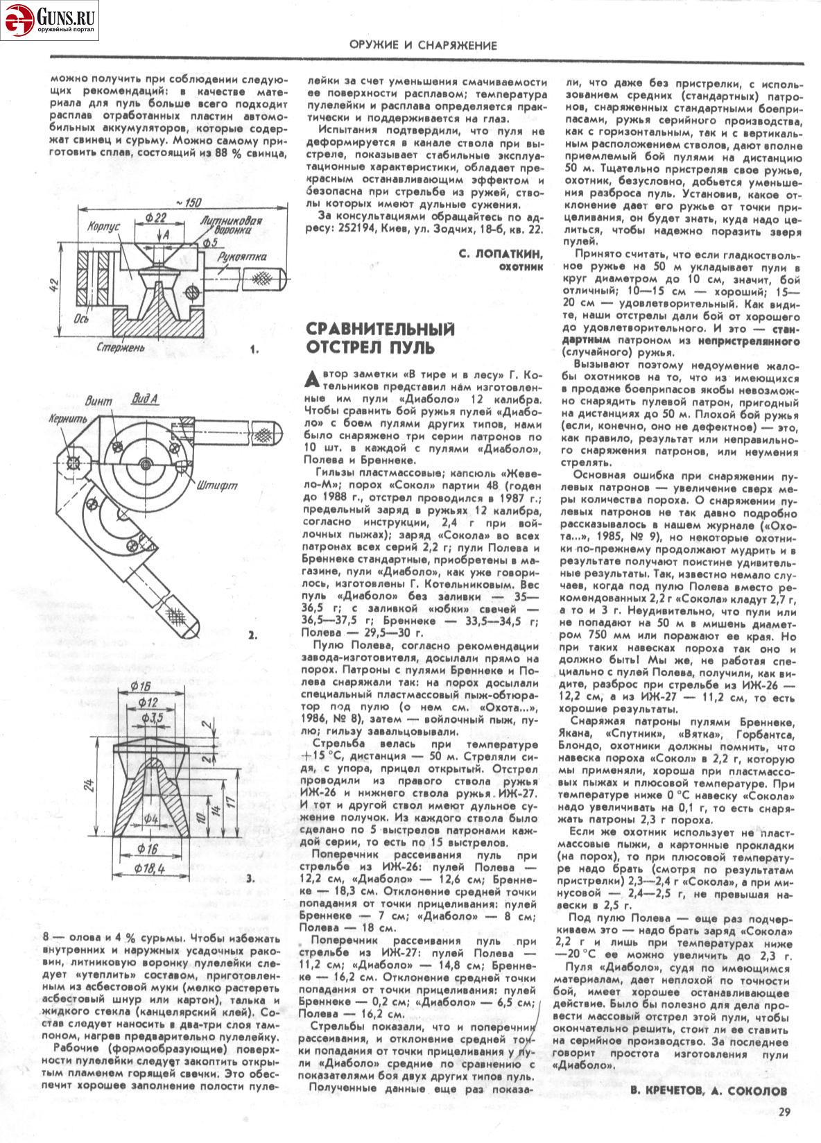 Это так, на скорую руку. Можно ещё поискать. А то, что её на пострелушках используют - вовсе не значит, что это плохая пуля. Отнюдь. Просто при наличии пулелейки - она практически бесплатная. Какой смысл в таком случае использовать для пострелушек Гуаланди или Бреннеке? Вот как то так...
