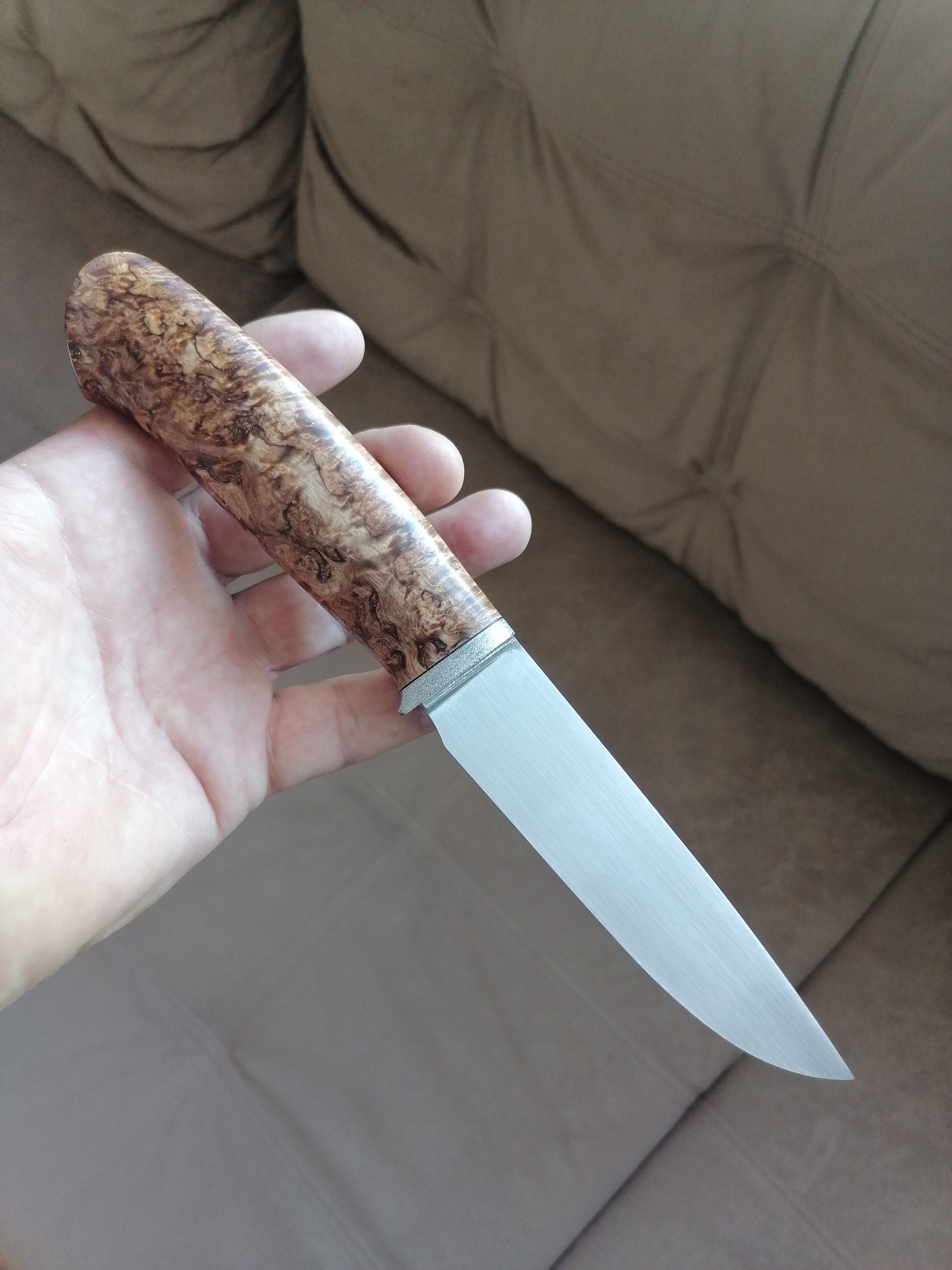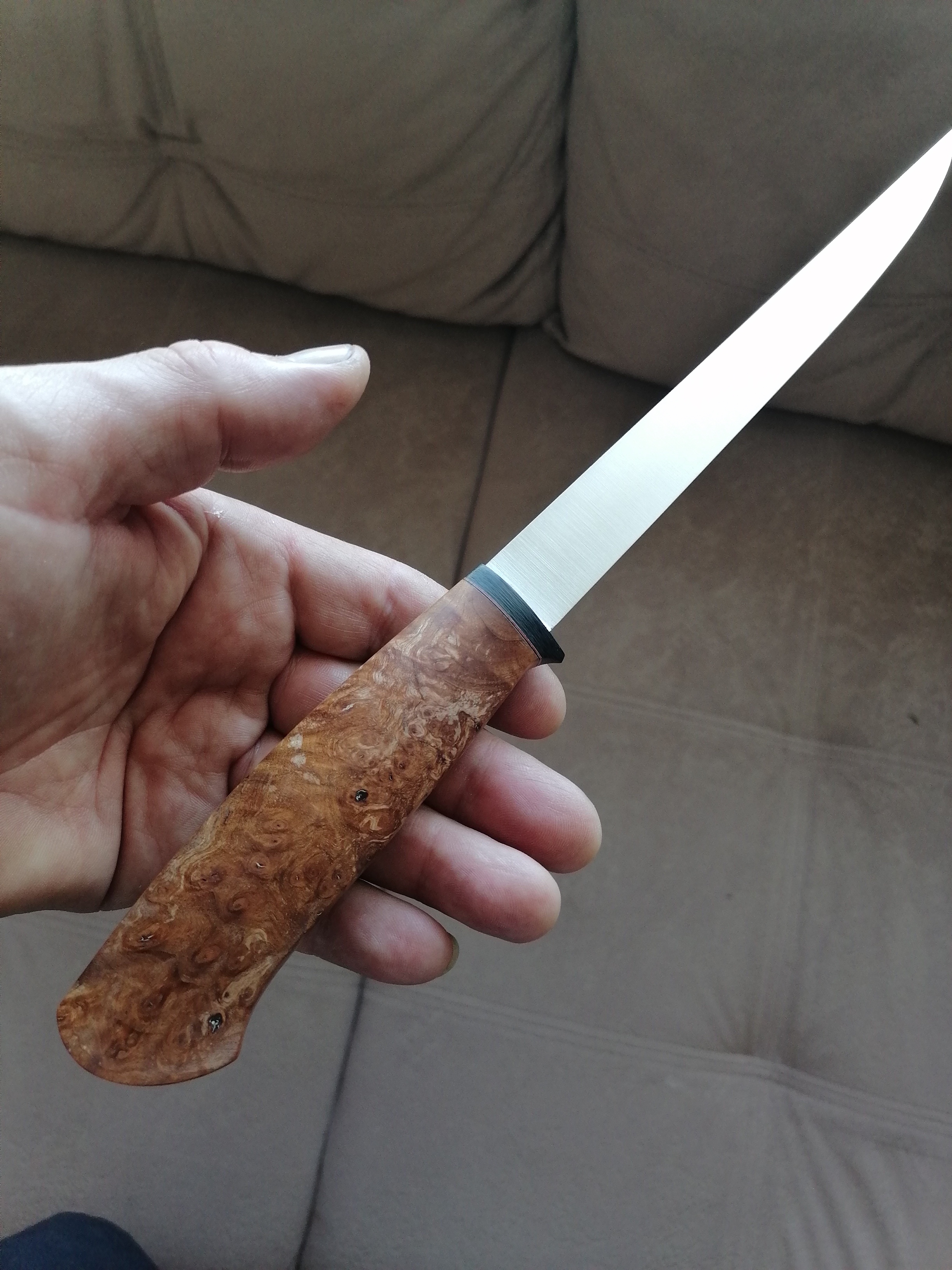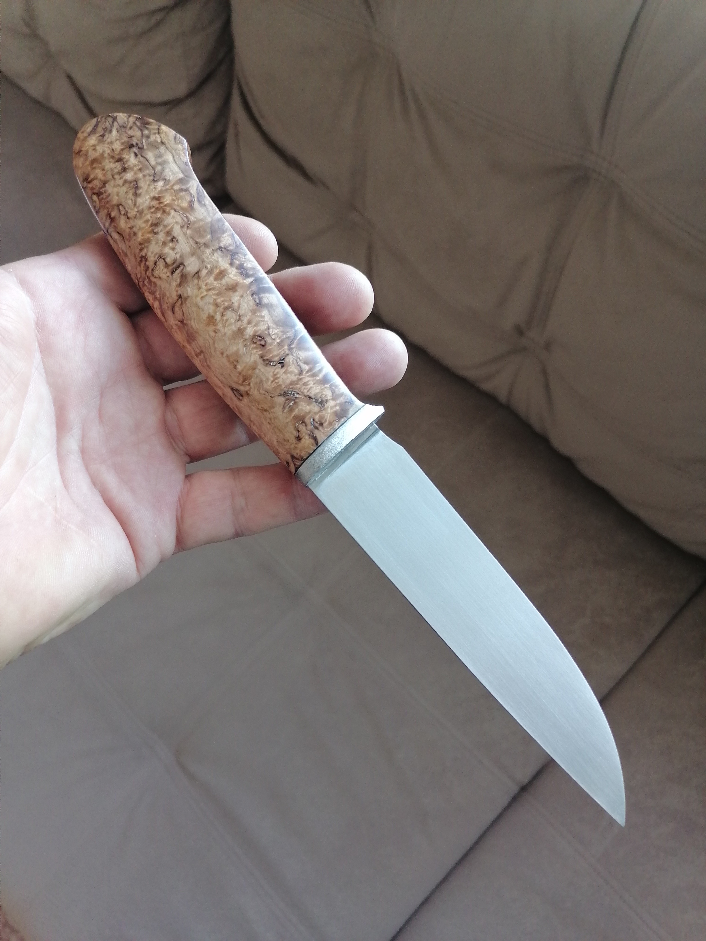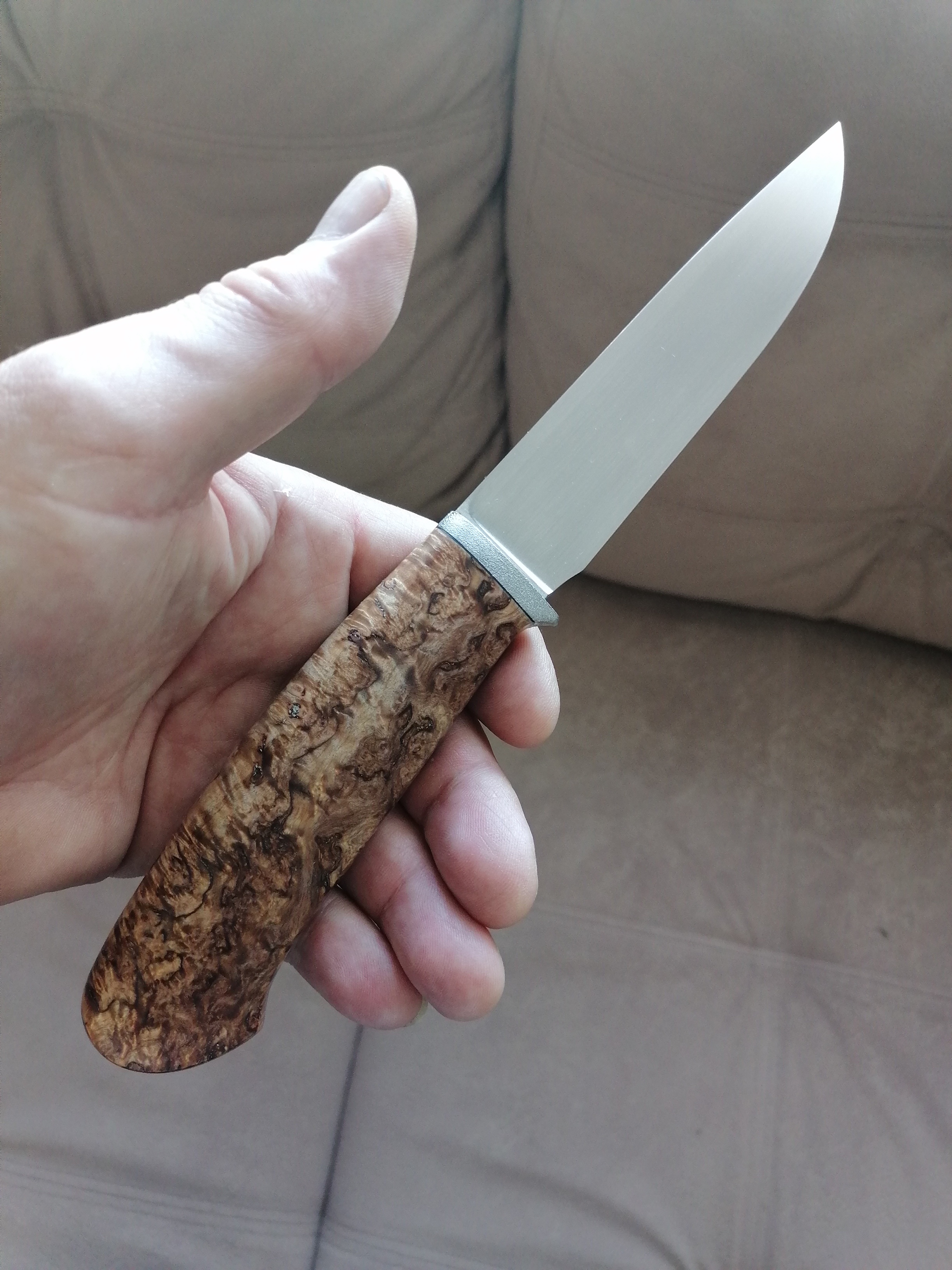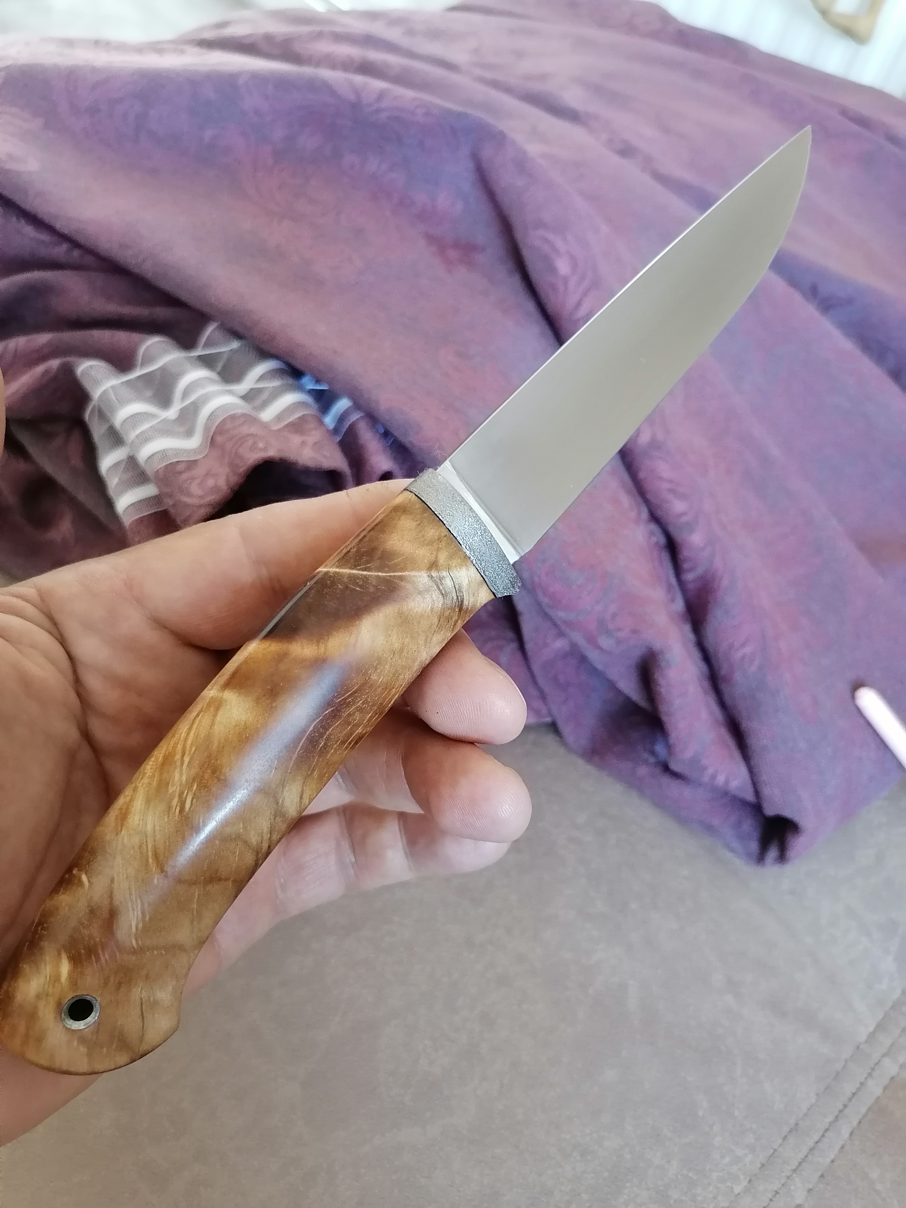 Тогда и я выложу свободную работу. Сталь n690. Если интересно, могу подробней описать ТТХ. Ножны сделаю отдельно под заказчика.