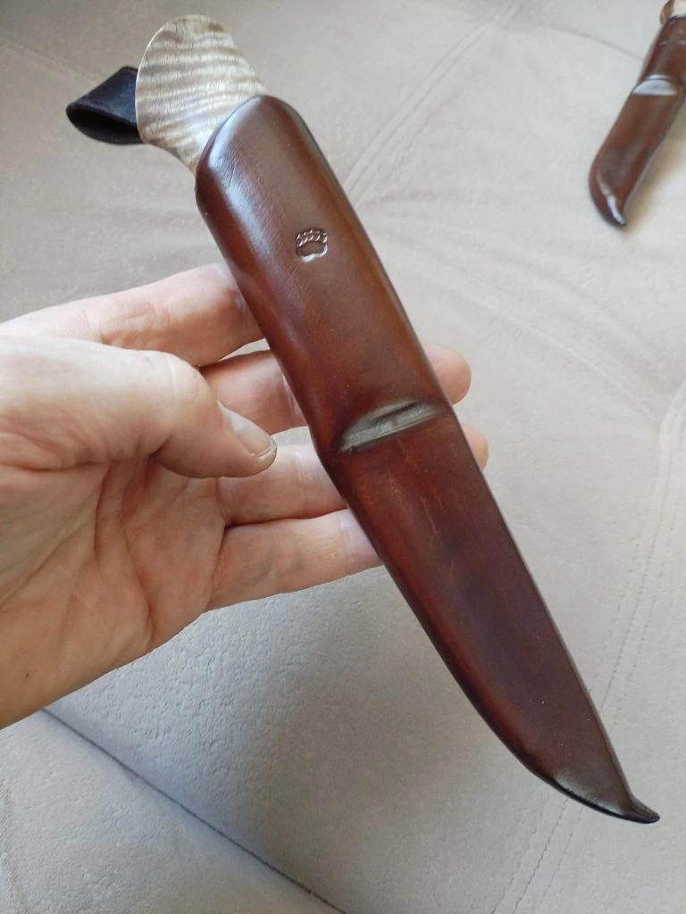 Ножны кожа РД, краски, воски, финиш аппретура.
