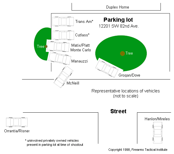 В день огневого контакта полиция Метро Дэйд заметила автомобиль находящийся в розыске и передала эту информацию в местную следственную группу ФБР. Восемь агентов ФБР на нескольких автомобилях выехали в район последнего визуального контакта с подозреваемыми. Полицию Метро Дэйд попросили не участвовать в слежке.