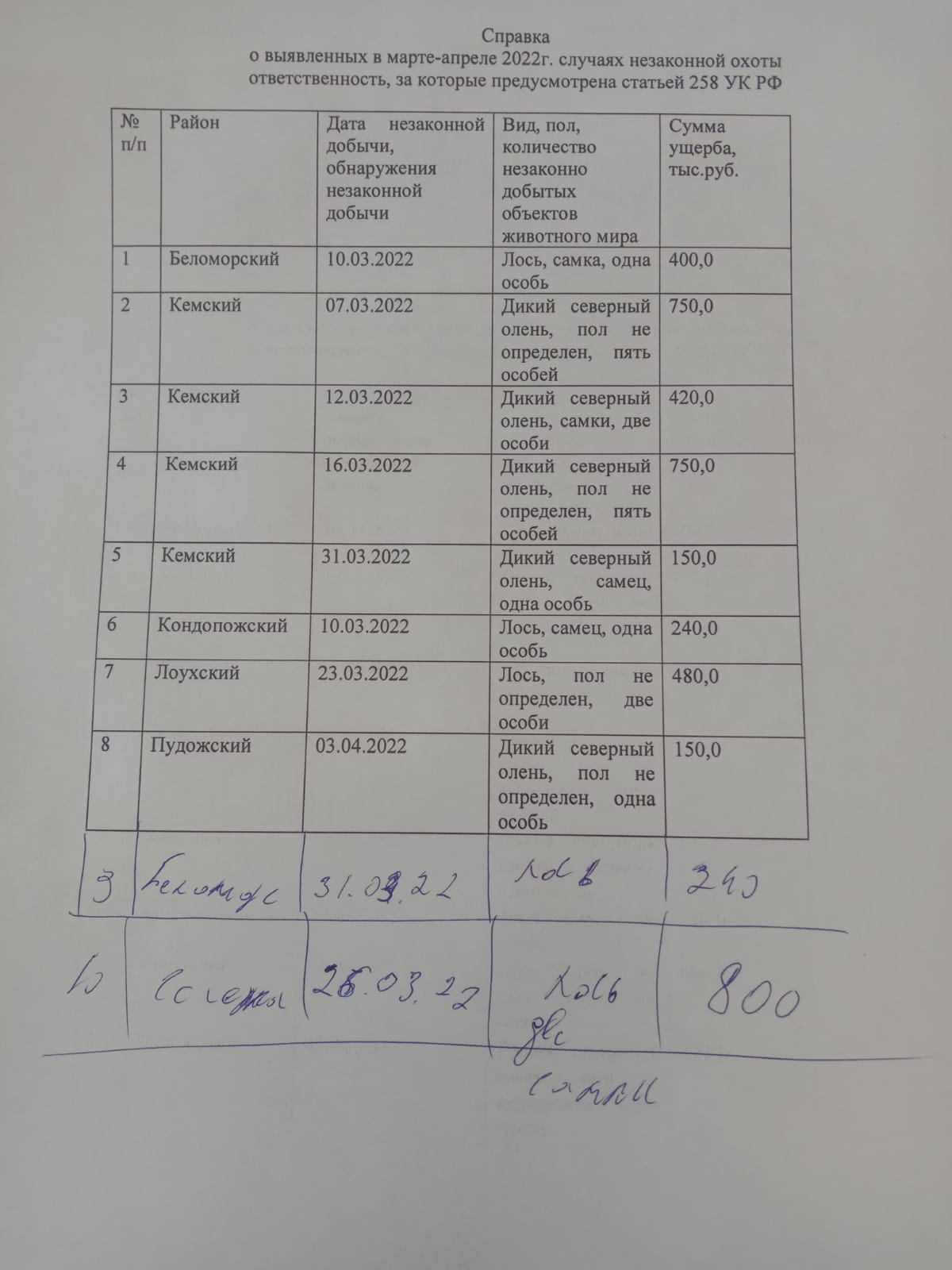 Особенно отличились северные районы нашей республики - Кемский (4 выявленных случая), Беломорский (2 случая), Лоухский, Сегежский, Пудожский, Кондопожский. По статистике, на 1 выявленный случай браконьерства - от 10 до 30 случаев невыявленных.