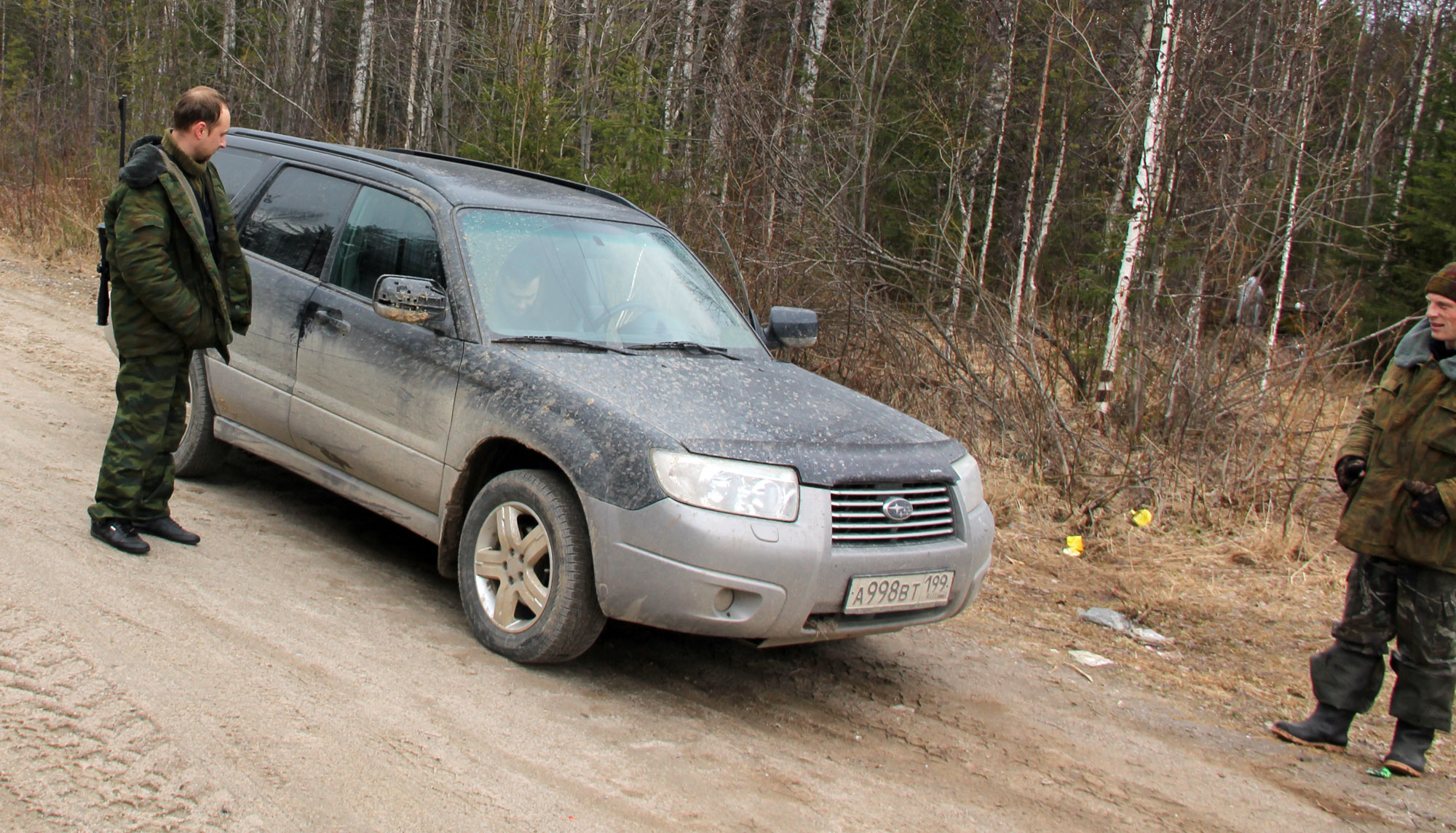 Ситуация - пересекаемся на дороге, что поворачивает к Паданам, со стороны Поросозера. Мужики к машине из леса выходят. Один на дороге стоит с карабином.