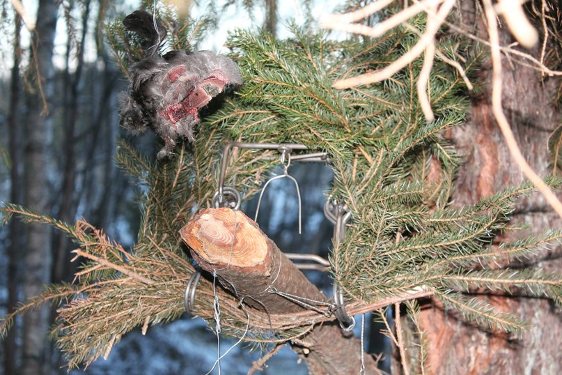 -Карел- попробуй ящики ставить вдоль ручьев. переквалифицируй их на норку, хоря. кстати, у меня есть места на ручьях, где попадается только куница, в редких случаях норка. может поменять проволоку на более тонкую, но прочную, чтоб сторожок мог выполнять свою задачу. попробуй переверни капканы, может вид сторожка будет меньше пугать зверька, когда он направлен снизу вверх или сбоку. если будешь ставить на жерди (как в предпоследнем фото), то как бы в продолжении палки свободно подвяжи крылышко или хвост от птицы, чтобы оно как бы играло на ветру, колыхалось. тем приманивая зверька, привлекало внимание. обязательно делай навес, чем гуще - тем лучше. во-первых спасает от дождя и снега, во-вторых привлекает внимание. ну в конце концов переставь немного в другое место. бывает у куницы прохожка из года в год в одном и том же месте, редко когда свернет, если капкан стоит метров 100 в стороне, то хрен поймаешь. выбор места установки имеет большое значение: края болот, бугры, края старых вырубов, граница леса (например хвойный-лиственный), ельники, места которые привлекают внимание (раскидистые старые ели, завалы, старые штабели леса, дупляные деревья и т.д.).