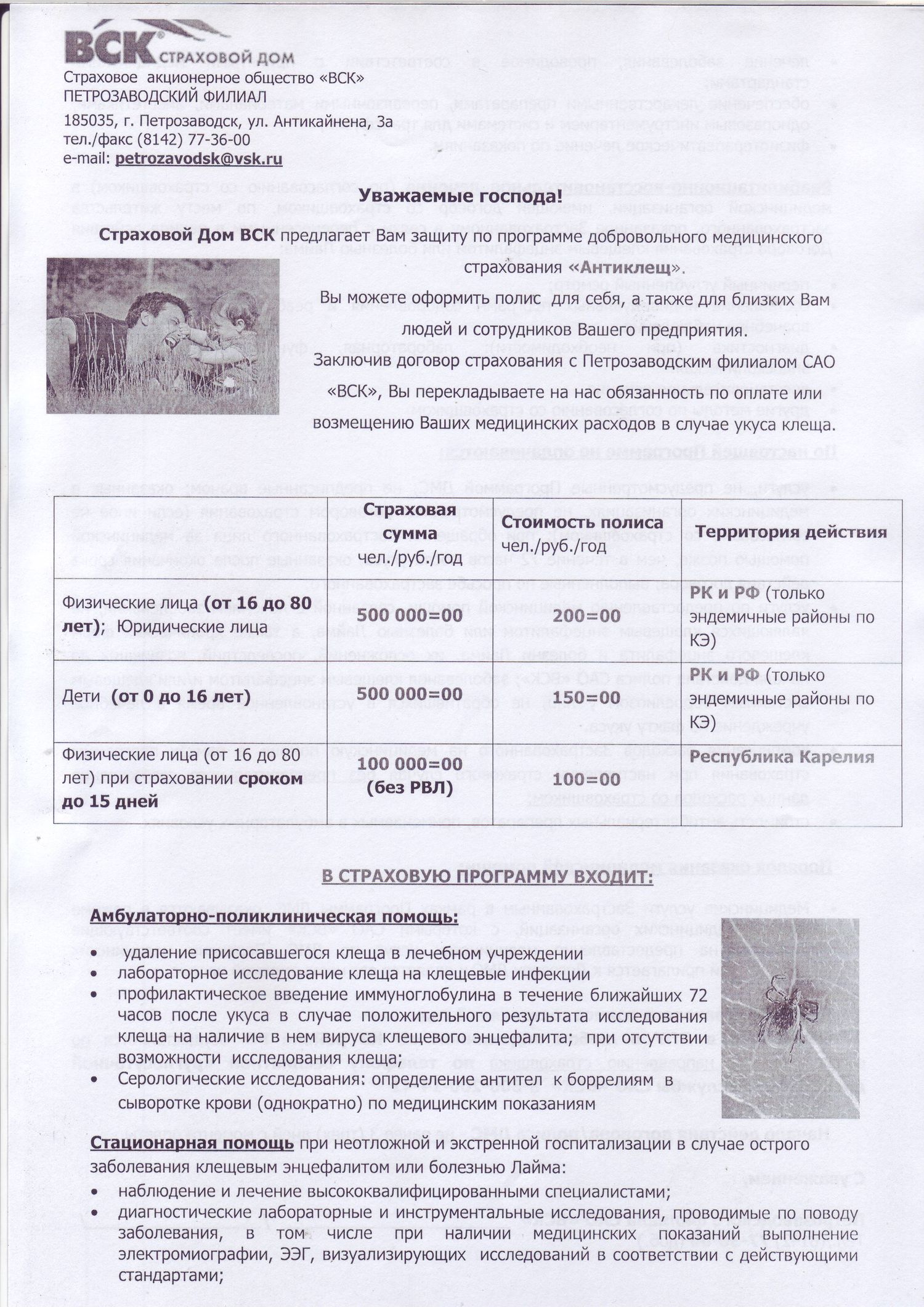 Открыт новый сезон страхования от укусов клещей от СК "ВСК".