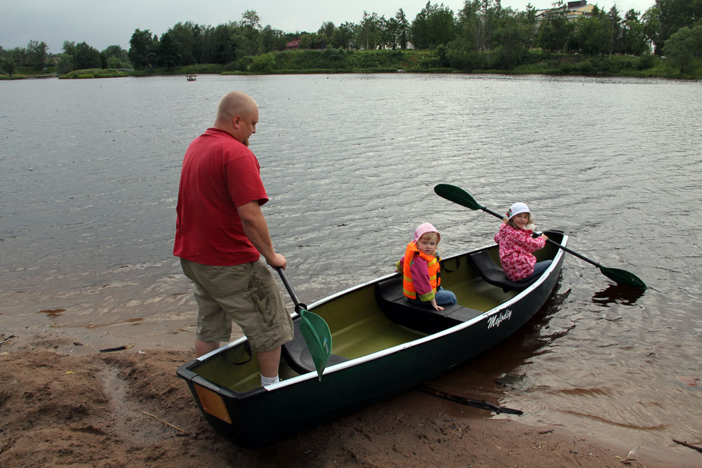 У нас такая канойка уже давным давно лет 18 минимум,правда она из стекло пластика.Тоже вдвоем таскаем.Очень проходимая и маневренная везде,камыш,ряска и т.д.Очень подходит для утиных охот. Самый единственный минус что очень верткая,пса с собой очково на борт брать.