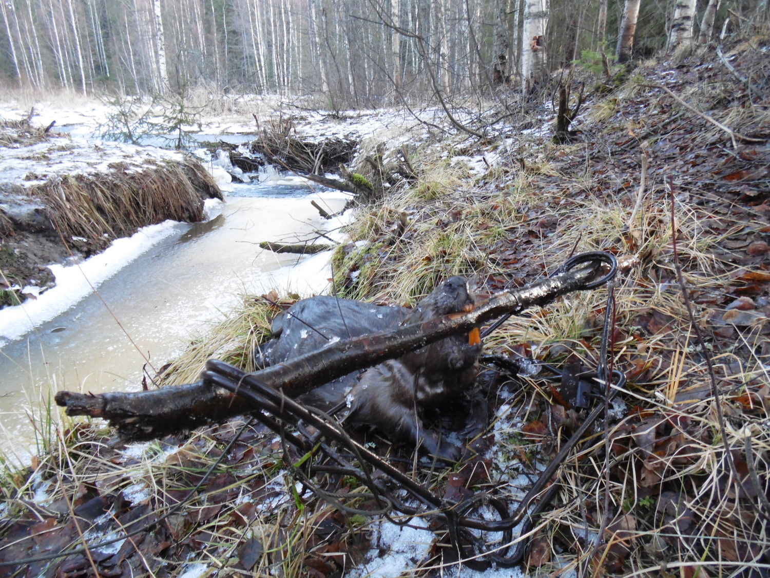 Кто стырил капкан? Визира 14 км направления Пухта-Ладва в сторону м. Кяй, второй ручей, второй сезон нового поселения бобра. КП-250 висит на дереве, ждёт. Н 1тоже лежит, а от этого (н3 с увеличенными дугами) только цепь. Знаю, что ногозахватами теперь нельзя, все равно жалко и непонятно, зачем он кому-то понадобился?