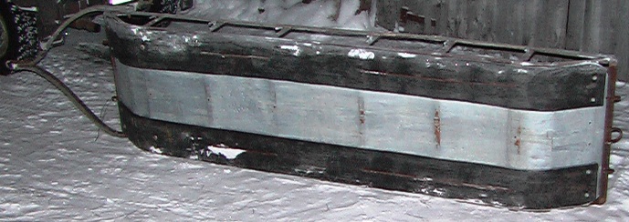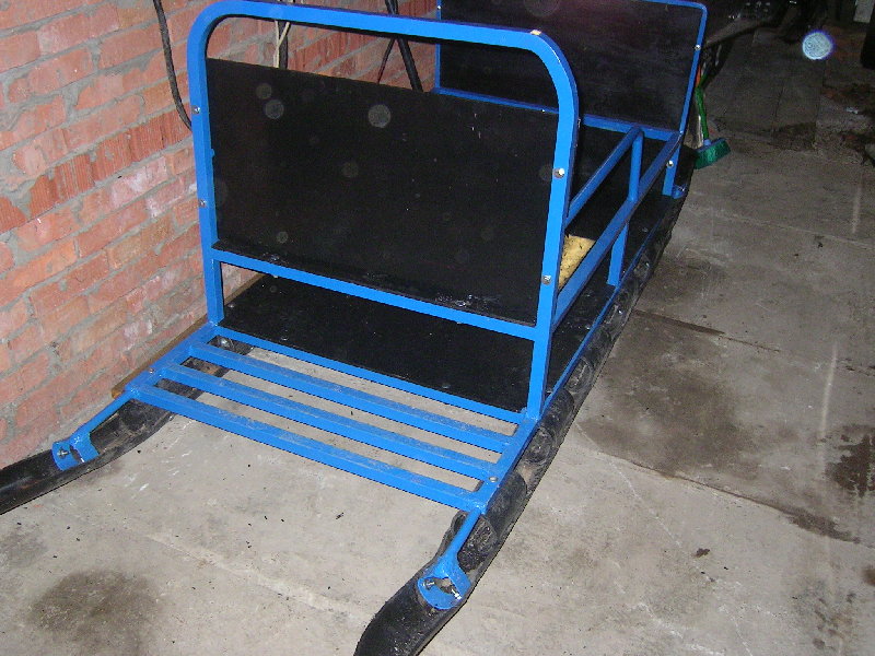 Вот пример интересных саней. Виден технологический процесс. Единственно - дышло надо делать жестко к саням, а не через ремень. Для аммортизации - пружины в самом прицепном устройстве дышла!