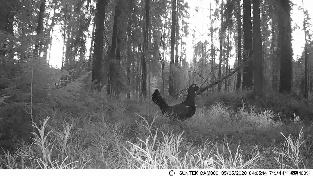 Глухари начали токовать. Но пока на земле проводят очень мало времени. Следов на току мало. На одном токовище всего один глухарь попал в одну камеру. Провел на земле несколько минут и поднялся вновь на дерево. Дело было 30 марта в 8 утра.