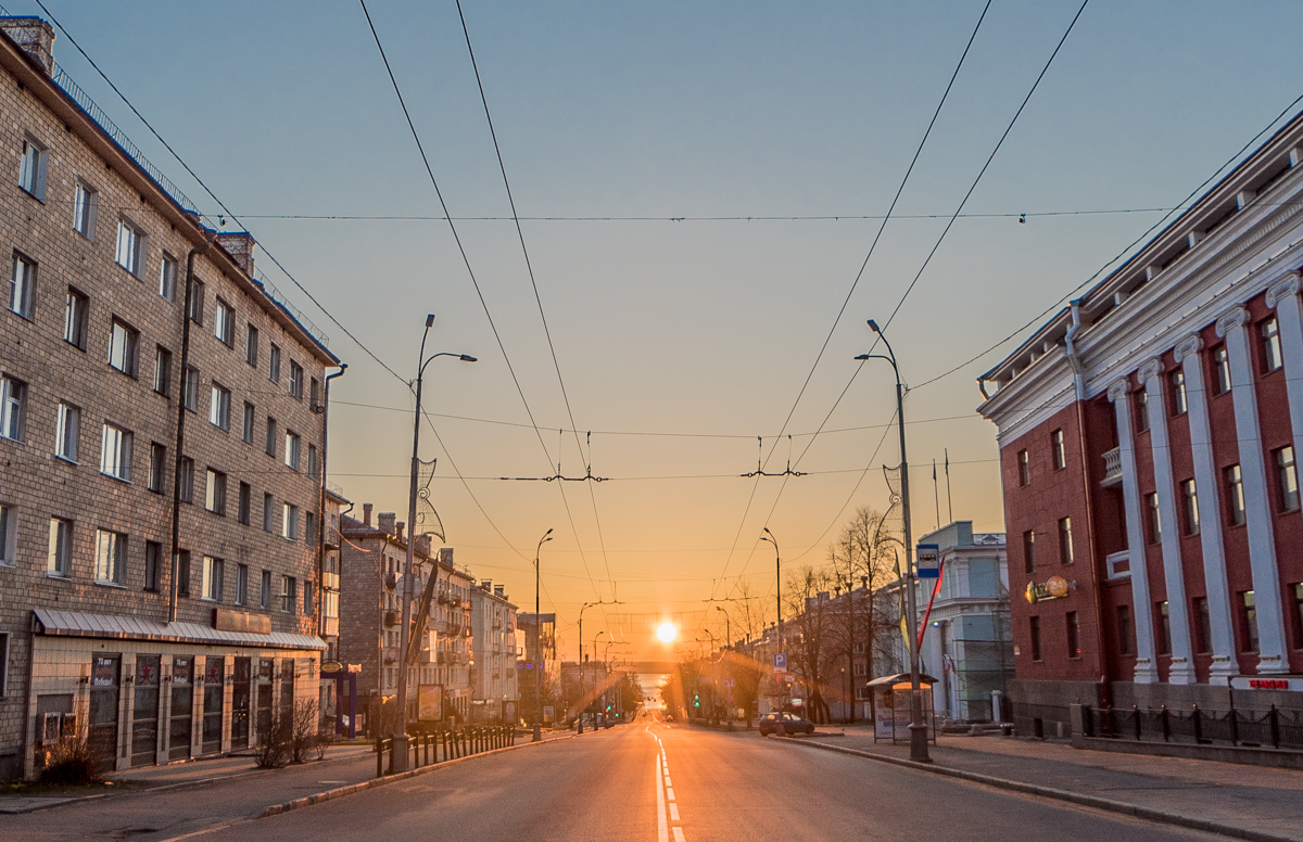 А солнце нужно было поймать чуть раньше, на оси проспекта