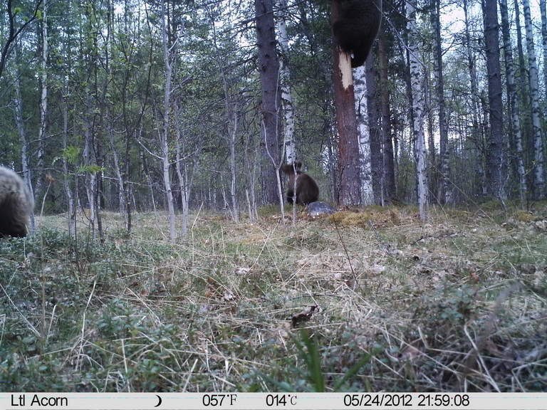 Снять на фотоловушку легко,просто повесить приваду повыше,но качество конечно не то будет...Просто к ним подойти не всегда получится,учуют и деру дадут,даже если страха нет и к медведице с медвежатами.Пробовал подходить к медведю при работающих собаках,так и не увидел,только услышал как фыркнул..ORA писал(а):Интересно, а с какого расстояния он этот кадр снял?