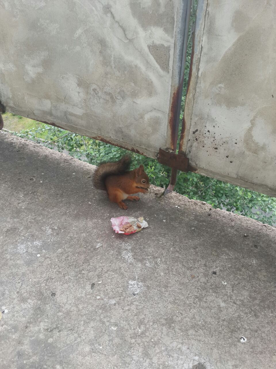 Белка с женой подружилась. Ходит на балкон конфеты клянчить. Батончики любит. Сегодня жена сфотоохотила её на телефон.
