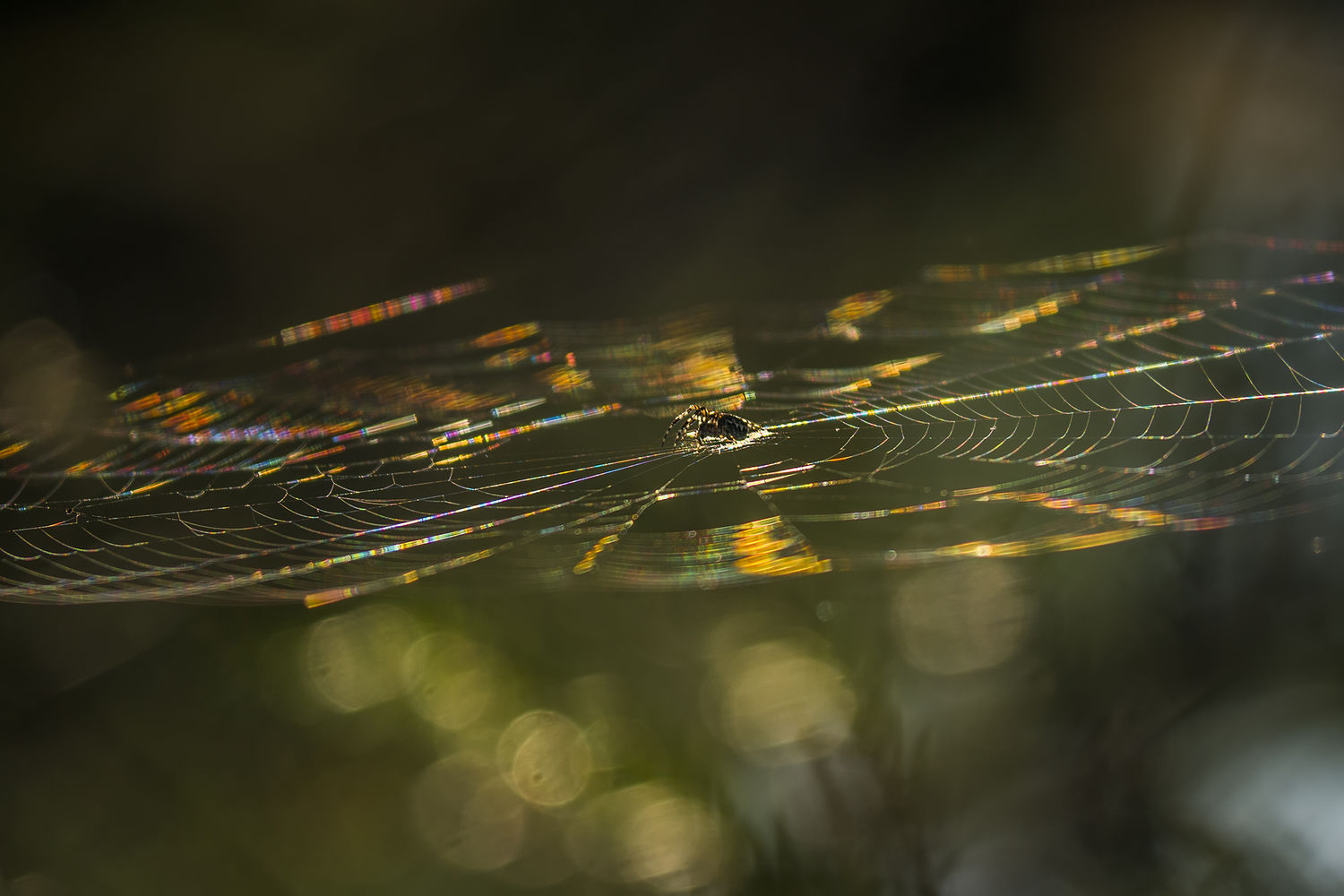 Паучок как на батуте. Говорят, что они раз в три дня новую паутину плетут.