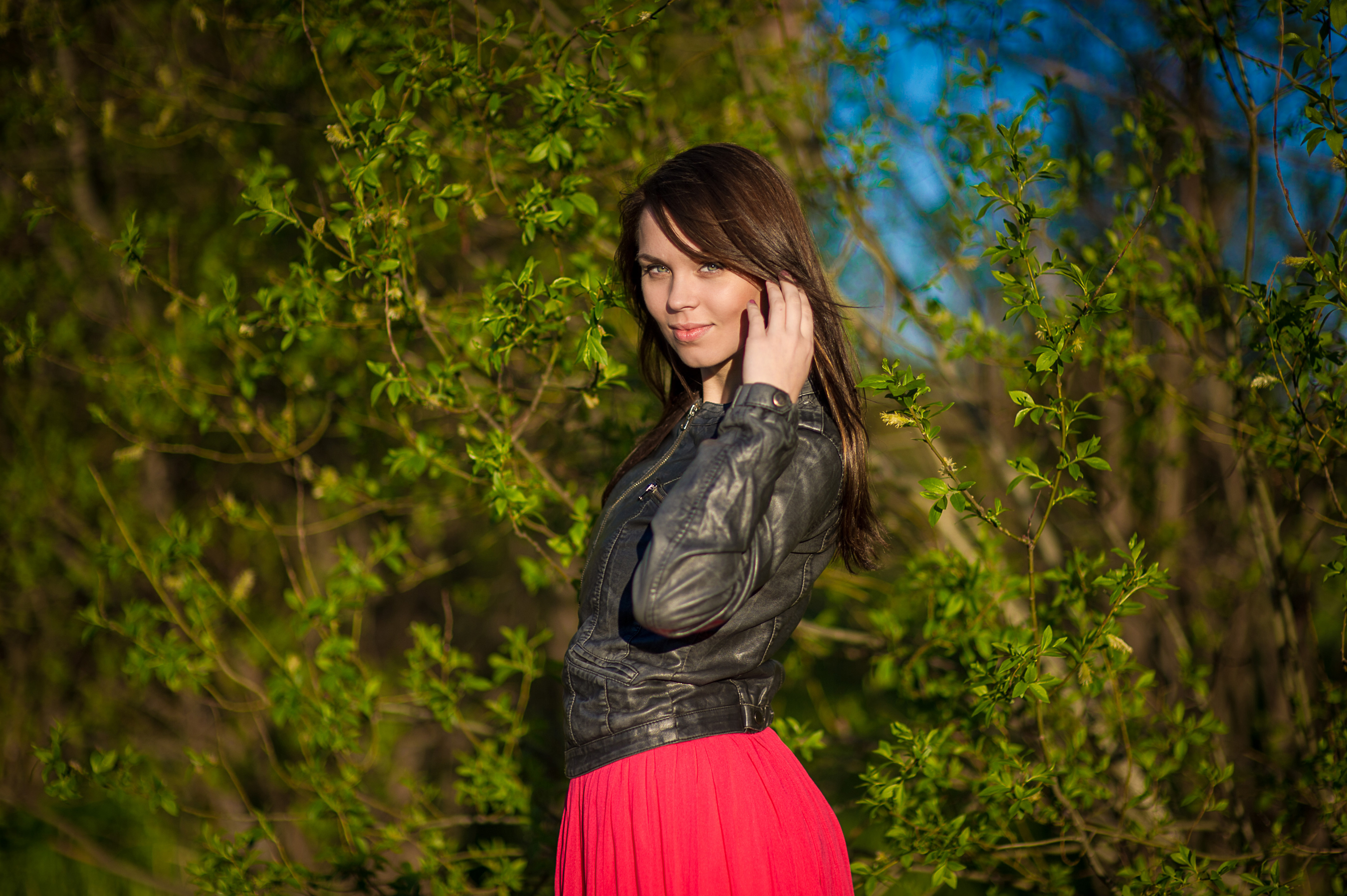 Здесь расстояние от модели до фона меньше, соответственно размытие фона не такое сильное, либо диафрагма не полностью открыта. Если б подошли поближе то размыли бы фон сильнее. ГРИП на одинаковой диафрагме меняется в зависимости от расстояния до объекта съемки. Ближе - грип меньше (или уже), дальше - больше (или шире) Затемнение в углах называется виньетированием. На открытой диафрагме - обычное дело. Можно убрать в постобработке. А можно оставить или даже искусственно создать в том же Лайтруме если того требует художественный замысел.