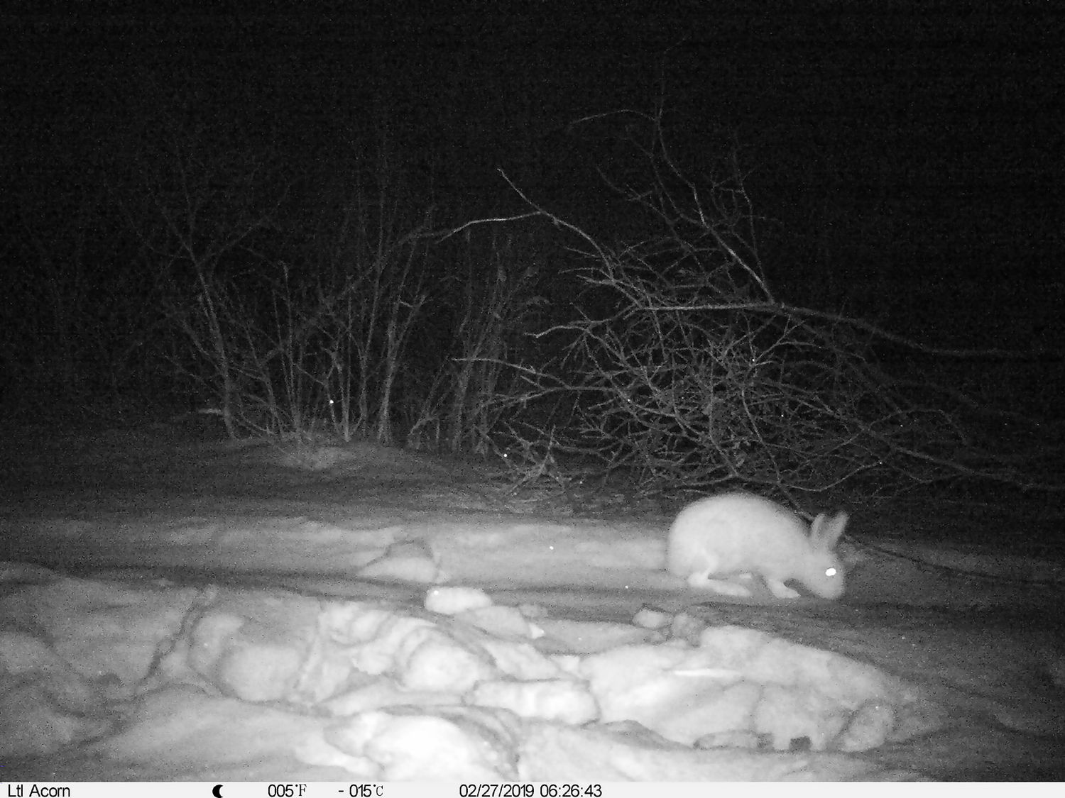 В камере, которая смотрела на озеро и увидела гонщиков – несколько раз промелькнули заячьи ушки. Но сам заяц был у самого ствола дерева под камерой и кроме ушей ничего не показал. Зато эта камера сделала несколько сотен фотографий красивых восходов и ночных вьюг, которые чуть позже мы объединим в один видео-фрагмент. Также в планах из коротких видеороликов, которые записали камеры, сделать небольшой фильм.