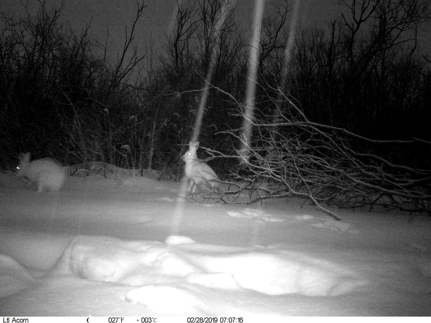 Кижские зайцы-беляки, лисичка и райдер на кайте – в лесной камере-фотоловушке.