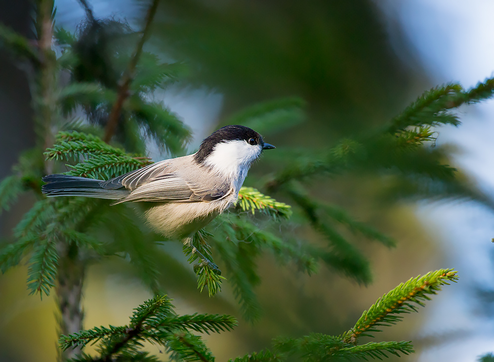 А сейчас знакомьтесь - буроголовая гаичка или как ее еще называют - пухляк. Пухляки относятся к синичкам. Это – небольшая птичка с серой спинкой, с черной или черно-бурой шапочкой на голове и яркими белыми щечками. Под клювом черное пятно. Клюв достаточно прямой и острый - его часто сравнивают с "шилом".