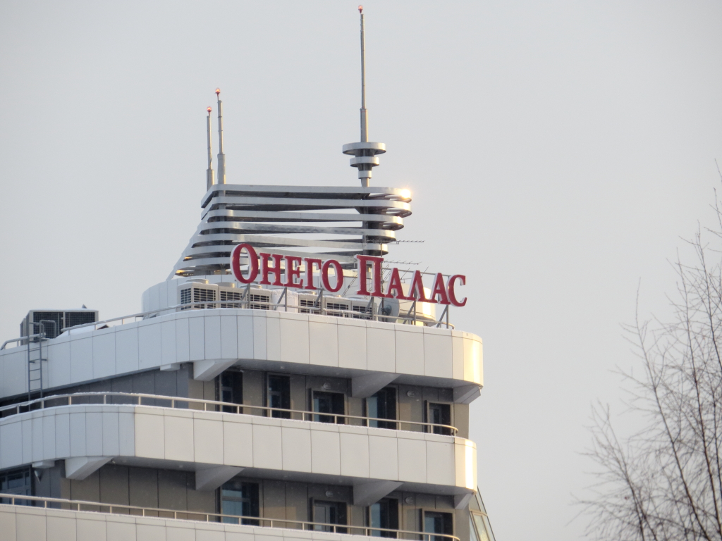 Побродил сегодня, посмотрел. Предлагаю вести съёмку этого места. Основной объект съёмки - надстройка на крыше Онего-Паласа. Она с резкой границей, с элементами крепления, по которым легко оценить резкость.