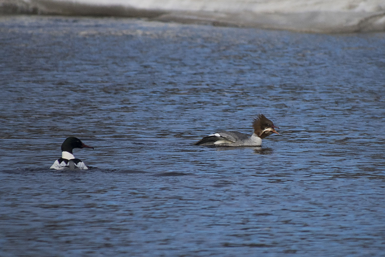 Вот уже несколько лет наблюдаю крохалей (предполагаю что больших) в городе. Последняя встреча совсем не давно, штук пять птичек было.