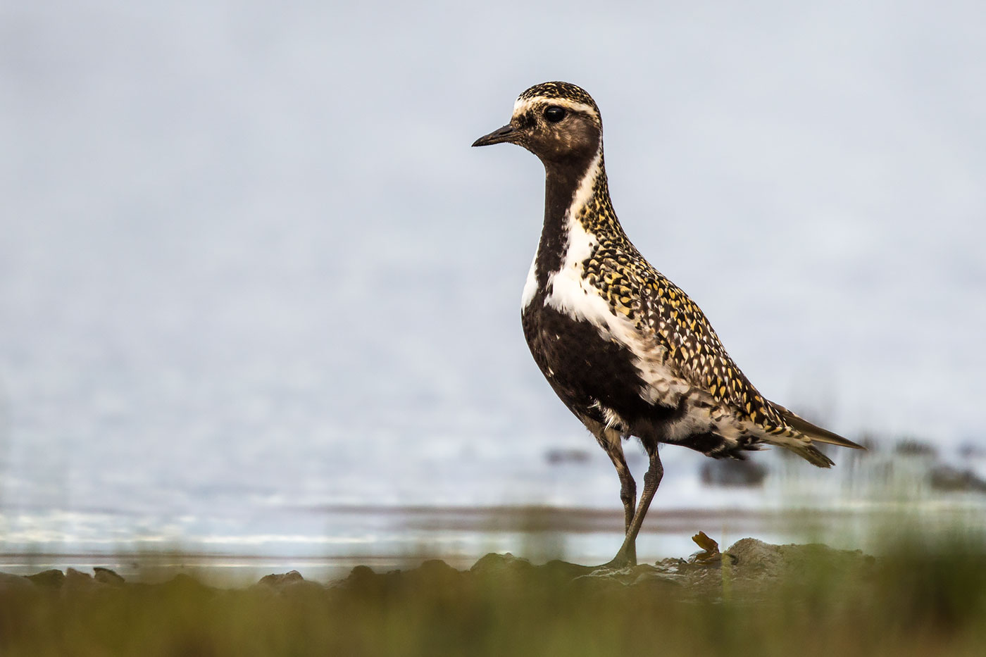 Золотистая ржанка (лат. Pluvialis apricaria) на побережье Белого моря.