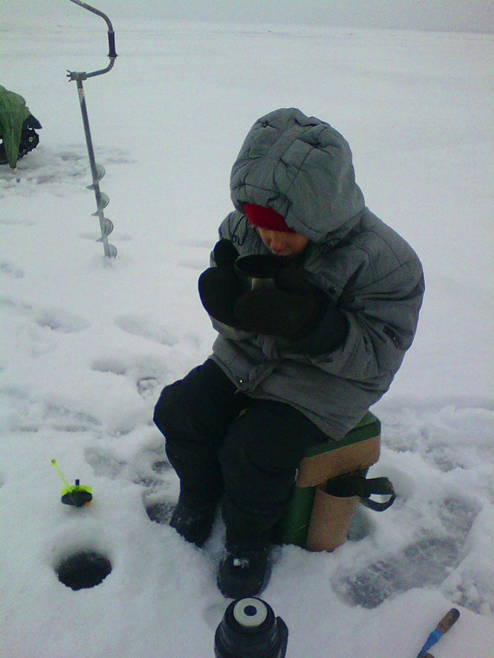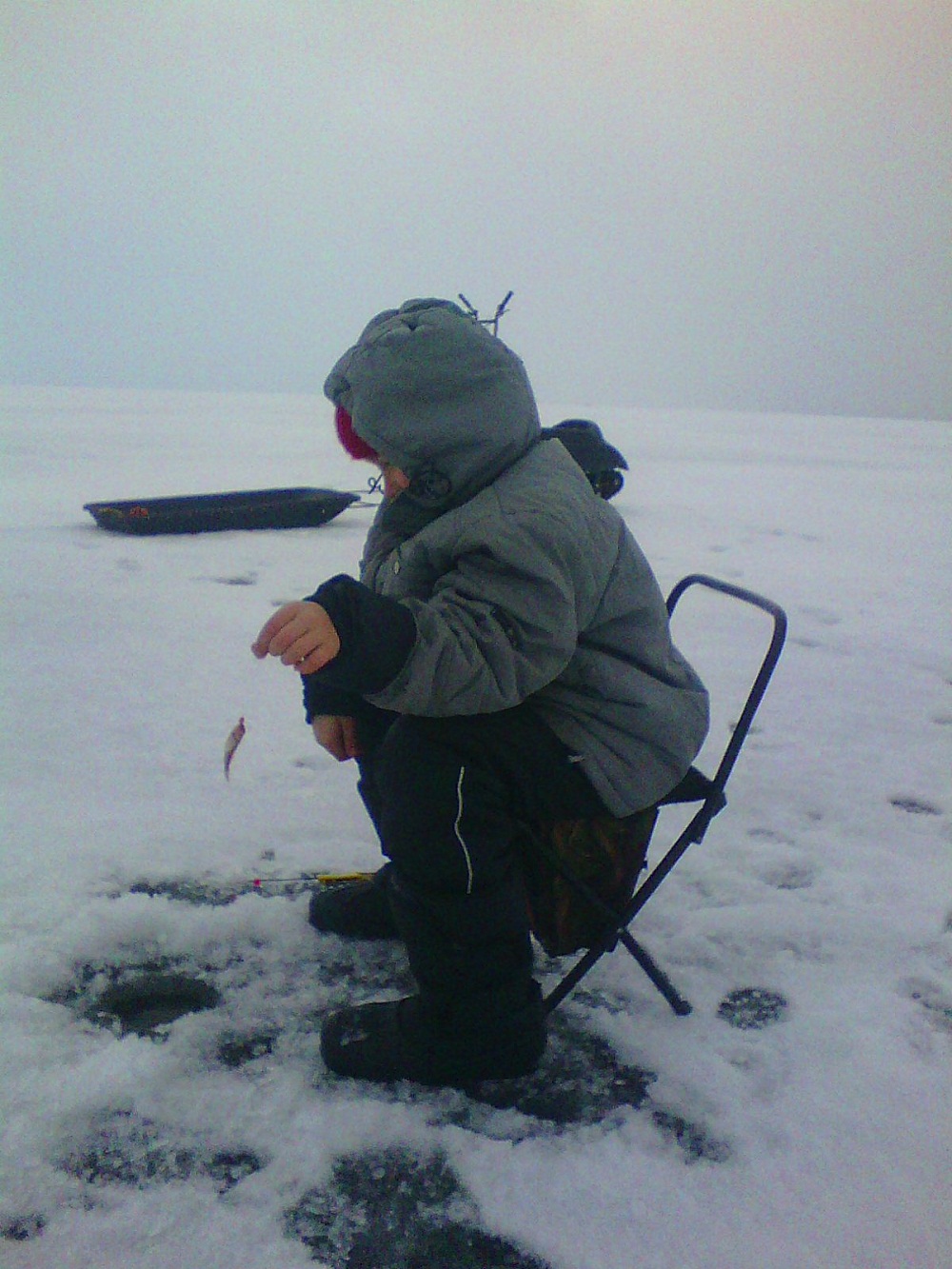 День субботний, великолепнейший день на исходе. На предстоящую рыбалку косо смотрели куча дел. Но никуда не денешься- рыбалка, обещанная ребетнышу на эти выхи сдавать свои позиции не желала. Да еще и на мотособаке, наконец то реанимированной, и порыкивающей по вечерам последние дни в гараже и во дворе. В пятничку пришлось еще до одиннадцати провозится в гараже, делая новое удлиненное дышло, т.к. со старым гнутым в волокушах вдвоем не комильфо. Сборы, глянуть форум, и к часу ночи можно завалится спать. Шесть- будильник, сборы, завтрак, и в дорогу. Собачка еще с вечера заняла свое местечко в машине. И вот тут просто закончились все слова, эмоции глушат. Накатались с малым по озеру от души, рыбалили от трех до десяти метров. Первая пара лунок упорно не желала делиться не только колючими обитателями, и даже не порадовала таким милым сердцу подергиванием кивка и ударами уверенных хваток передающихся в руку. Перебазировались на сотню метров, очередная пара лунок появилась в онежском льду, и вот… вот то за чем и едем мы за многие километры, не спим, покупаем, делаем, меняем, получаем и дарим соседям по палате кучу непонятных для не посвященных в рыбацкое прибамбасов, от удильников до супер внедорожников.. Есть первый окунь сегодняшней рыбалки, суповичок, и следом из воды, зацепленный любимой окуневкой- ложкой, его близнец. Еще еле ощутимое тюк в удильник, и на лед является матросик мизинчикого калибра и отправляется обратно в царство Нептуна. Ванюха стойко колдует над мормыхой и на предложение поменяться снастями гордо отказывается- каждый должен сам поймать свою рыбу, молодец. И старания не проходят даром- на свет Божий является колючее чудо придонной ихтиофауны, царь- рыба ерш. Ну а дальше смена мест, туды – суды. Переезд, пара лунок, мормудель и блесна идут в разведку, папа бдит за двумя удилами, а сына наяривает круги на мотособачке, пока моська не начинает протестовать против такого кислорода с снегом вперемешку. Горячий чаек из термоса, отогреется и по новой- смена мест, пара лунок, покатушки. Как результат- материальная часть рыбалки заключенная в четырех окушах и одном ерше, малая толика и далеко не цель, которую вряд ли кто четко сможет озвучить. Но, тарелочка ухи, сваренная из свежайшей рыбки, греют не ложку но душу юного рыболова, угостившего добычей бабушки. Как то вот так, просто и незатейливо, и пролетел один рядовой и вроде совсем заурядный день- день, оставивший в душе что то неощутимое, но такое доброе и приятное.