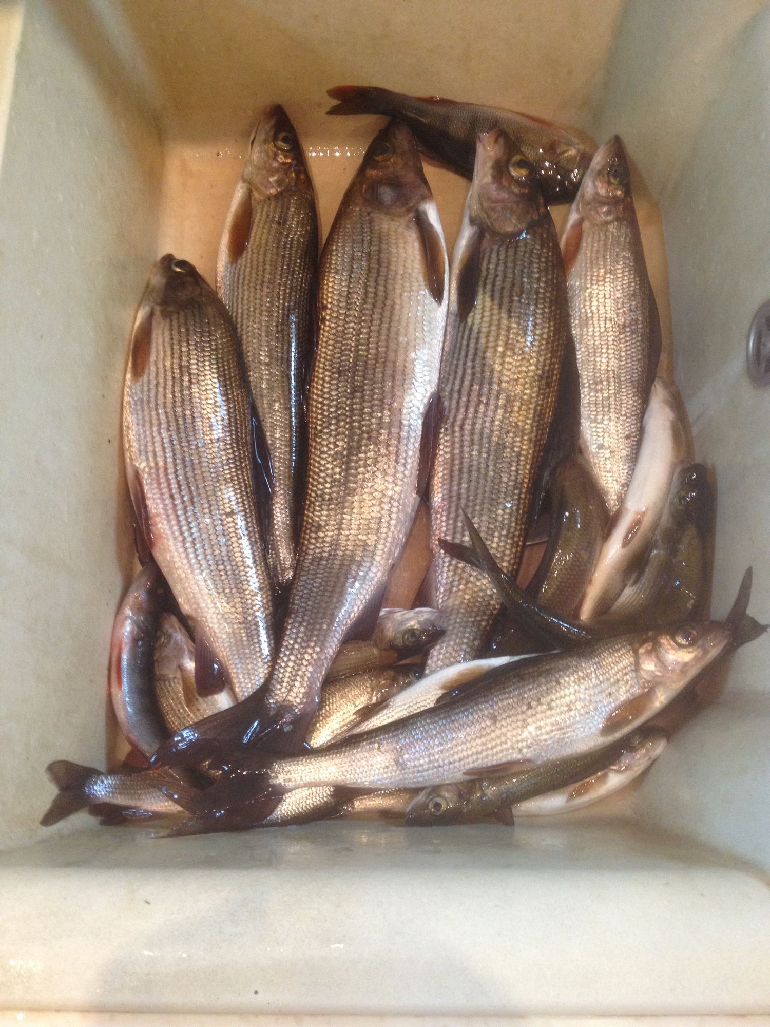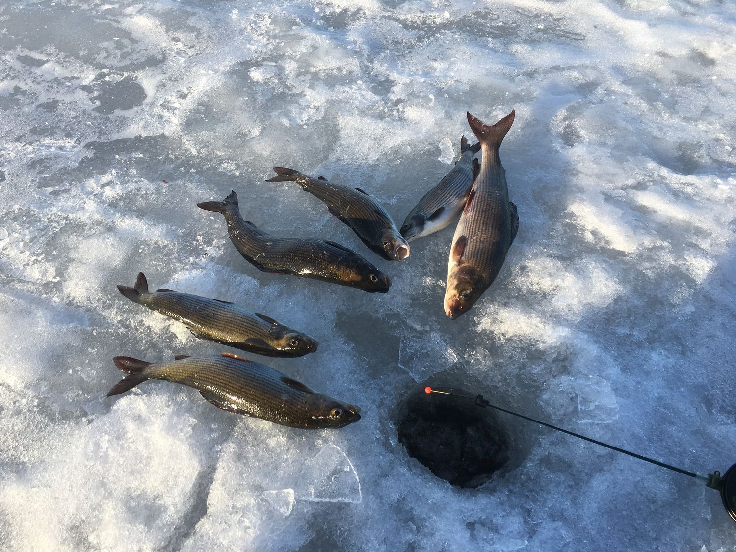 , хотя шума на Онего он не боится ( есть опыт ловли зимой на речках,там совсем по другому) Прежние свои уловистые лунки на обратном пути я всегда облавливаю,часто бывают в них поклевки,практически после заброса. По последнему льду уловы по количеству больше,но хариус в общем количестве по размеру мельче. Один важный момент- всегда имейте с собой комплект запасных ножей, иначе будете неприятно огорчены. У меня рекорд-два комплекта ножей об камни в ноль,хорошо хоть лунок было насверлено к этому моменту. Поэтому не берите с собой буры с дорогими ножами. Я сверлю 130 барнаулом,хотя можно и 100,у хариуса тело прогонистое и в лунку при не форсировании процесса он входит хорошо. Самый большой мой хариус выловленный на юге Онего в 2009 году весил 1.200 гр. С тех пор таких экземпляров мне зимой не попадалось, да и вообще мне кажется его стало меньше и он помельчал. Дома всегда смотрю, что у него в желудке,а там шитики в каменных домиках и маленькие ракушки,один раз был бычок подкаменщик. Кстати, гольяны и подкаменщики верные спутники хариуса.