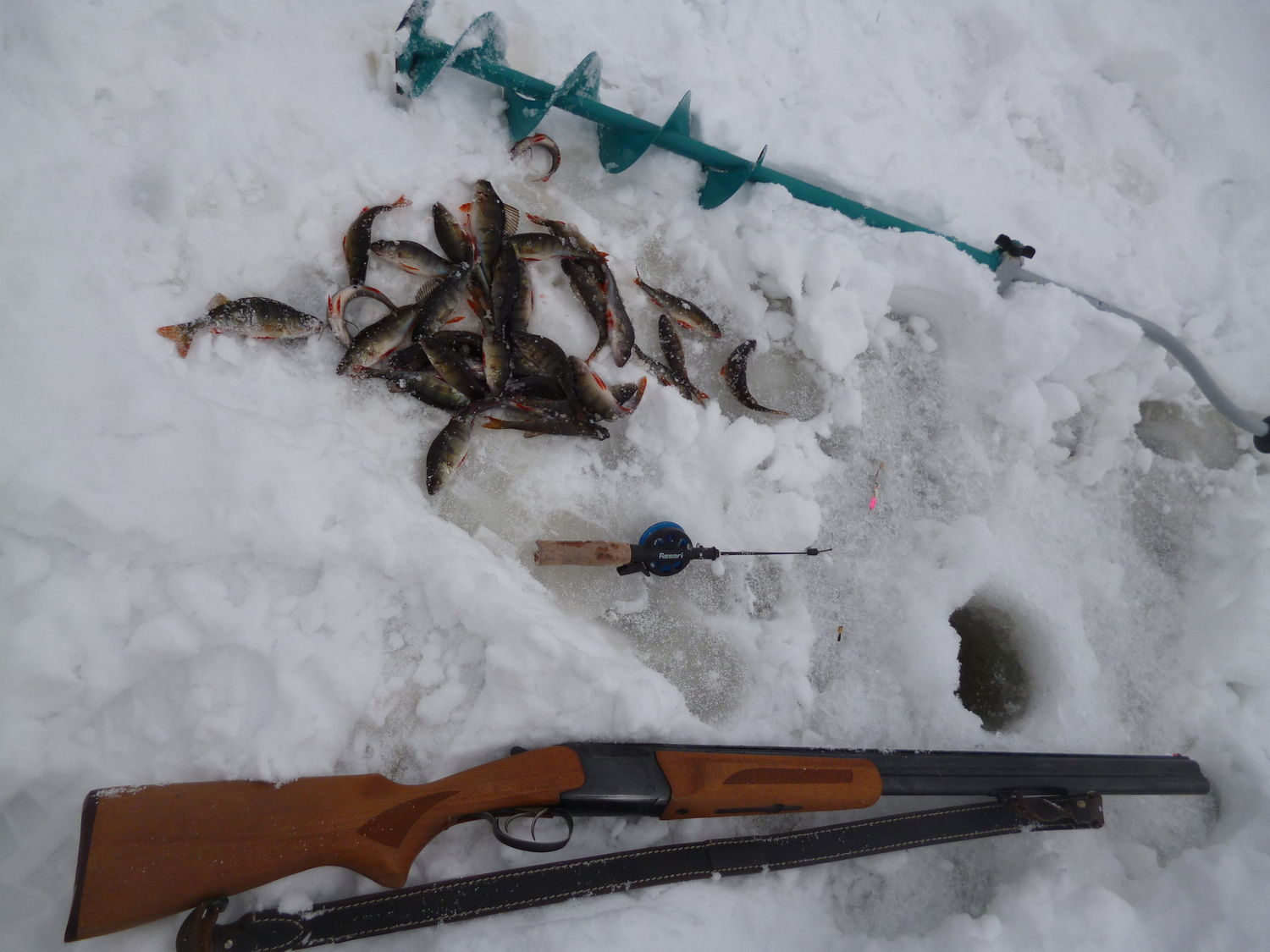 А кстати вот. 26 февраля выбрался в лес побродить, на закрытие охоты. В рюкзак кинул удочку, и лямками. к нему же, пристегнул бур. Вобщем на одной из ламб, глубина 50-70 см.