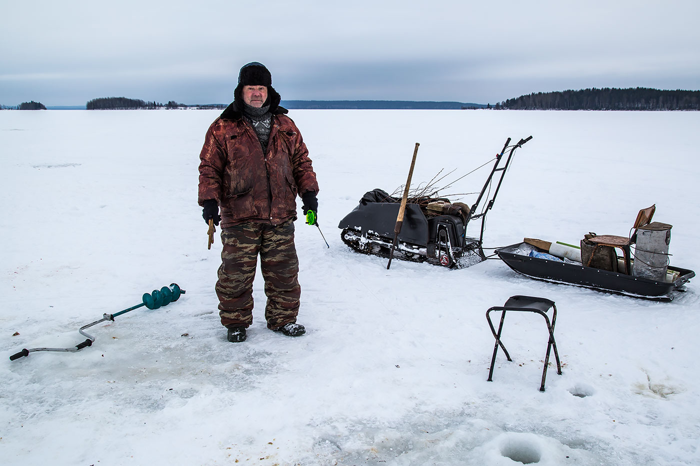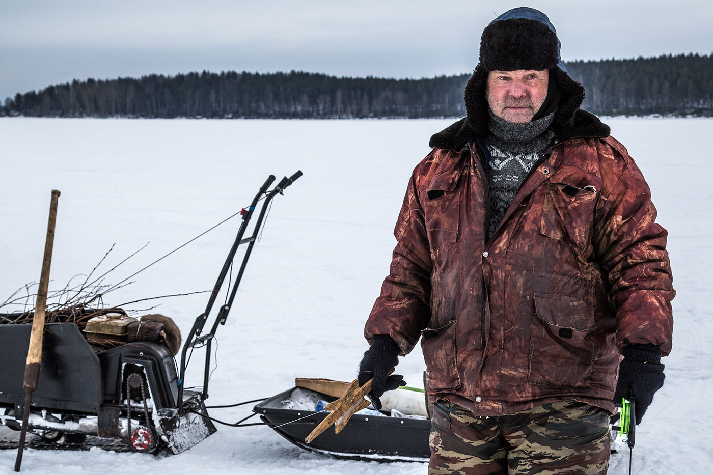 "Мы раньше никогда ночью налима не ловили - он и днем нормально берет. Бывало до нескольких десятков за день можно вытащить. Вот, как раз на той луде, где ты в темноте сидел, у меня была удачная рыбалка однажды. Налимов таскал в один день - руки устали. Очередного вытащил на лед, отбросил в сторону и опять наживку в воду опускаю. А напарник кричит, мол, не налима ты поймал, а палию. А я в азарте даже внимания не обратил, что ценную красную рыбу вытащил. В тот год мы то место и раскрыли для всех - до этого там не рыбачили. Привел туда соседа, знакомых... Напарник ругался, мол, зачем место выдаешь. А я ему и говорю - рыбы всем хватит, пусть и мужики порадуются. Вот."