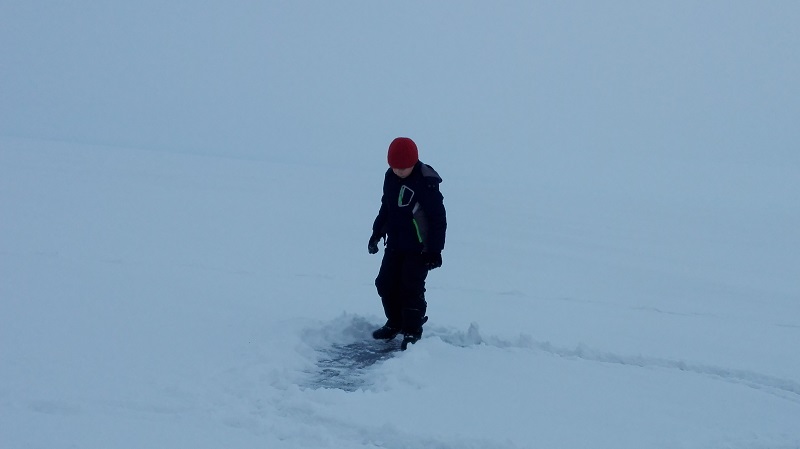 Сгоняли сегодня семейством на ближнее Онего. Не надо вставать ни свет ни заря, гнать фиг знает куда, чтоб плеснув за удачу в чашку и в лунку, еще в сумерках замереть над лункой- порталом. Дирижировать самой зачетной блесной, задавая железке подводные пируэты, с замиранием сердца ожидая тычка. Даже не так- ДЫЦ, и нет ни погоды, ни ветра, ни холода, вся вселенная сжимается до размеров лунки за которой такой желанный трофей. Треморить последней надеждой- проверенной козявкой, в готовности отреагировать на малейшее изменение поведения кивка и зацепить единственного ершика.