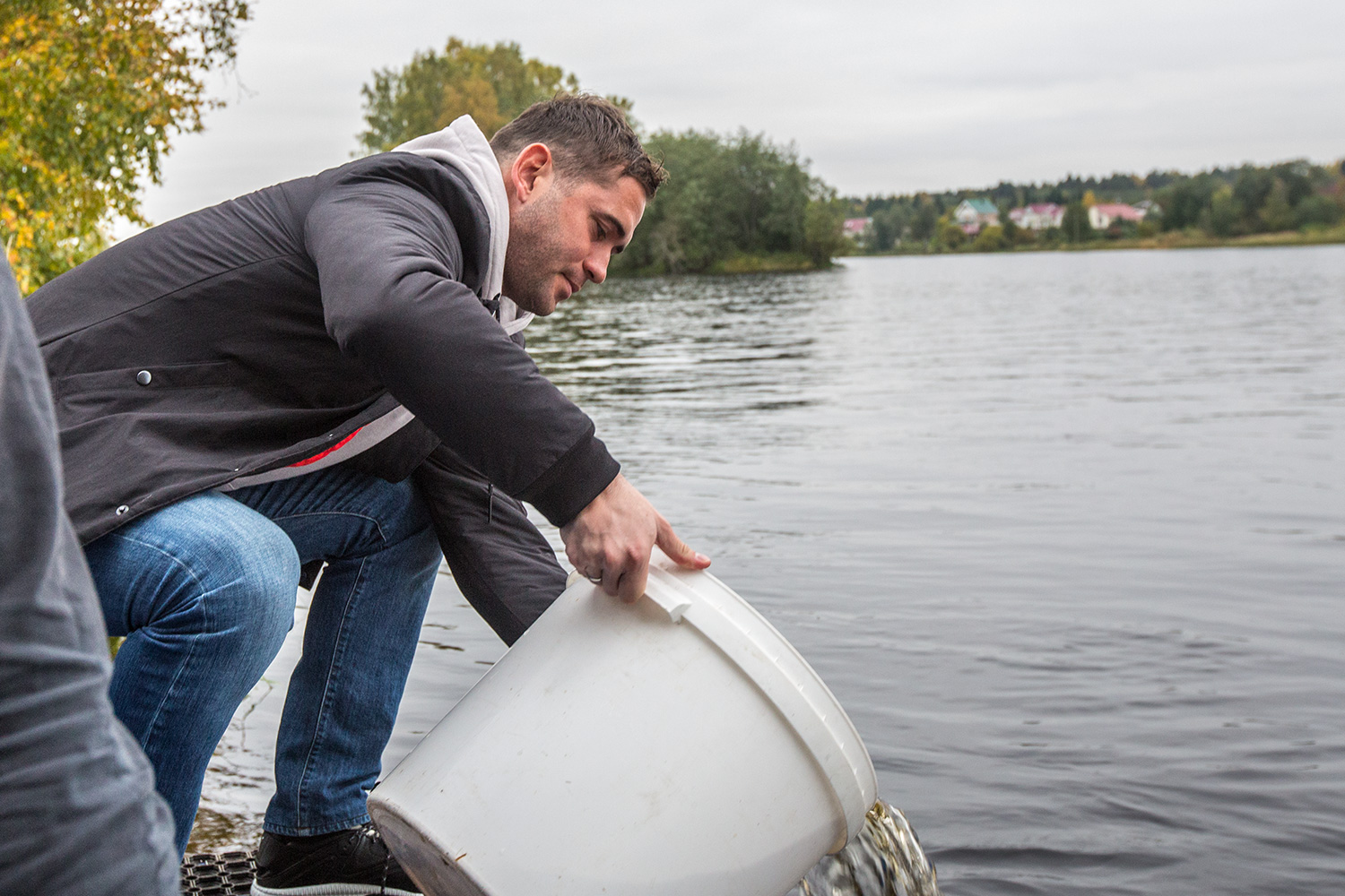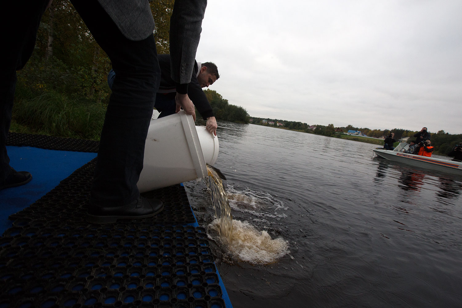 Кержаков сказал: "Всем привет, вначале дело, общение после." И пошел выпускать молодь лосося в реку Шуя.