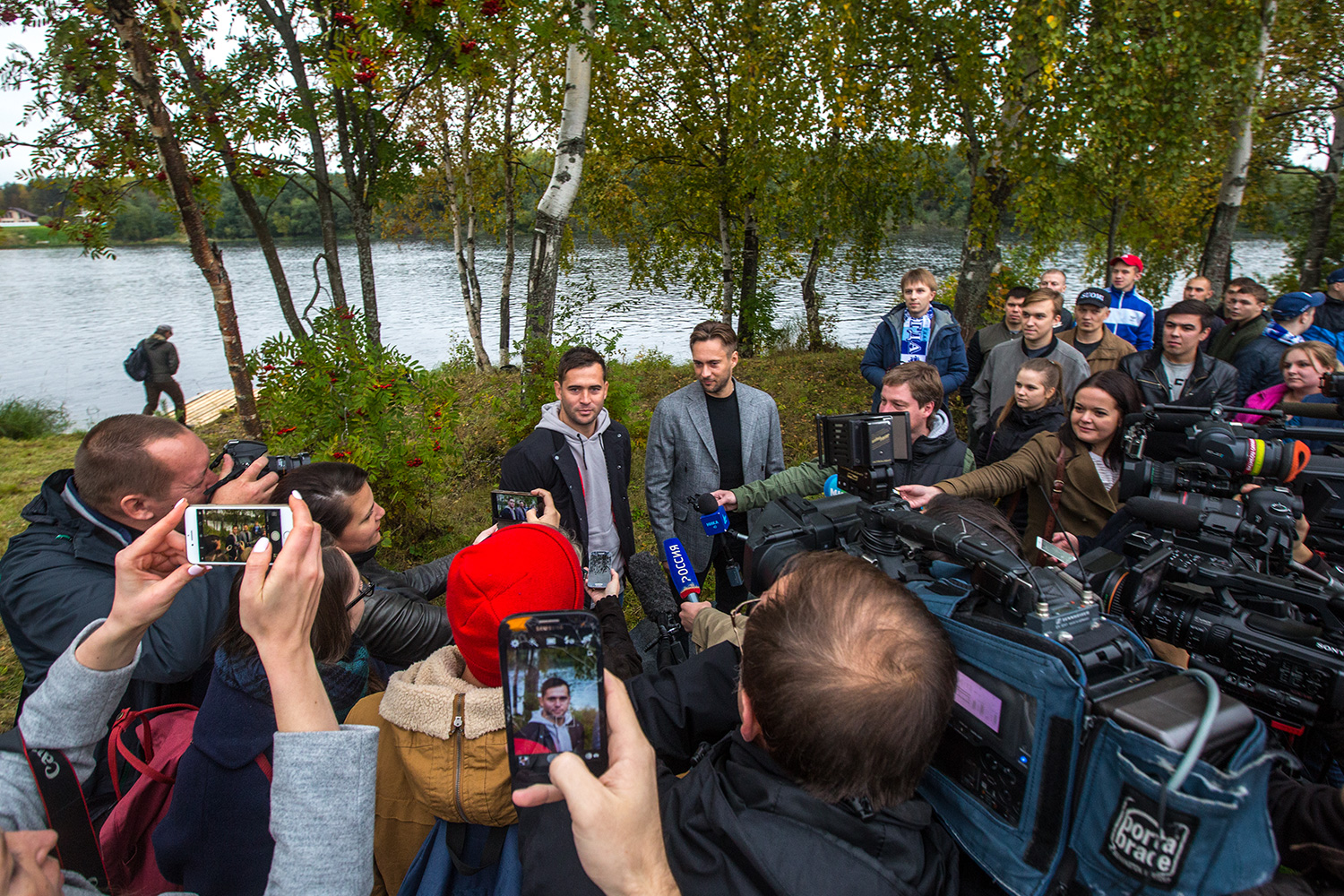 У берега реки Шуя было людно. Фанаты футбола откликнулись на предложение Кержакова принять участие в выпуске мальков. Как только Александр вышел из авто началось: "Саша Кержаков лалалалалалалалэй"... Фанаты до этого момента были мрачные и прятались под капюшонами. А тут - забыли про все