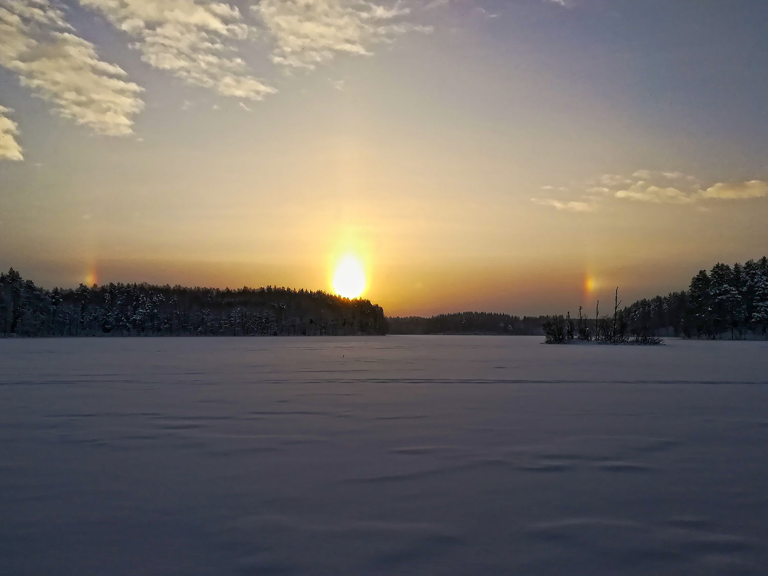 Один из стародавних партнеров, даже больше - друзей, добровольно и значительно помог в нескольких декабрьских проектах. И вот дело к Новому году с Рождеством, было полдня свободного времени - и в качестве небольшого презента с моей стороны - состоялась экскурсия к смелым синицам Кондопожского района Карелии. С элементами зимней рыбалки. В результате - за парочку часов успели поглядеть на бесстрашных синиц, поймать рыбки на городскую уху, поглядеть на красивую зимнюю природу. В том числе на радужное гало вокруг очень краткого по декабрю солнышка.