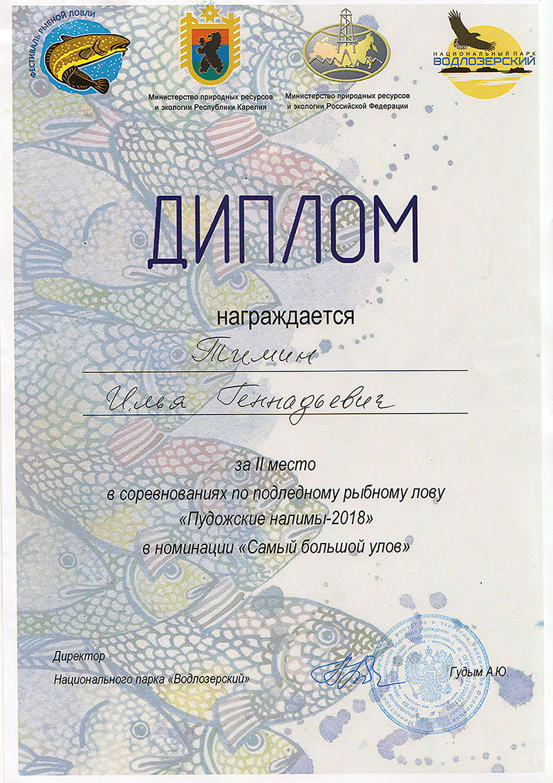 PS: Мне повезло дважды. Нет. Трижды. Первым делом повезло с приглашением в Национальный парк "Водлозерский" на дни фестиваля как фотографу. На втором этапе удалось спрятать фотоаппарат и зарегистрироваться как участнику. А на третьем этапе, после фотографирования остался всего 1 час для рыбалки... Рыбка не давалась. Клевала и не подсекалась. Но водлозерскую плотву я раскусил. Об этом будет видеосюжет для всех, а для меня на память - диплом за второе место и шведский ледобур! Спасибо Куганаволок, Водлозеро, Пудож, Нацпарк и всем организаторам праздника!