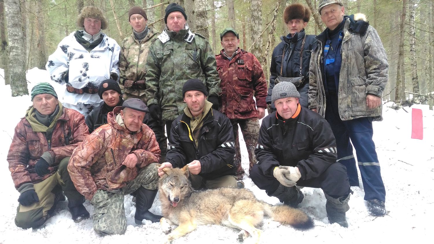 Сегодня взяли волчицу, у которой было шесть эмбрионов, матерый самец после выстрелов ушел через флажки.