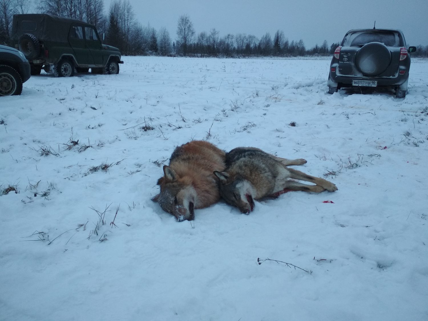 С полем :)><(: Здоровенные волчищи :co_ol: Серьёзная работа проведена, не так просто таких матёрых завалить :a_g_a: