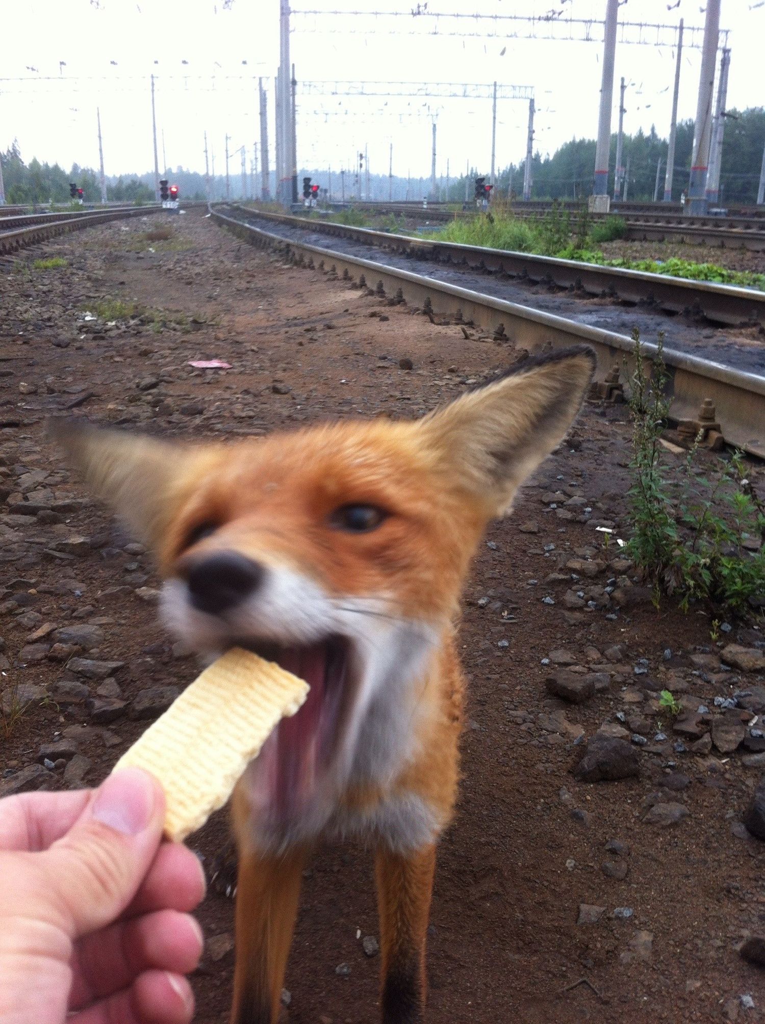 Когда я лисичке хотел дать из рук сосиску вареную, дак мне пришлось сидеть на корточках часа 2 не меньше! Из рук взяла, дак вот морозу было 27 градусов :ded_moroz: