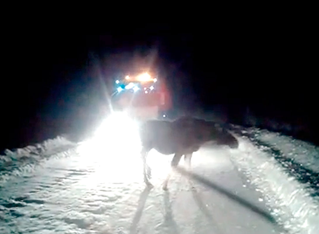 Лось вышел на дорогу в Калевальском районе и не давал проехать машинам.