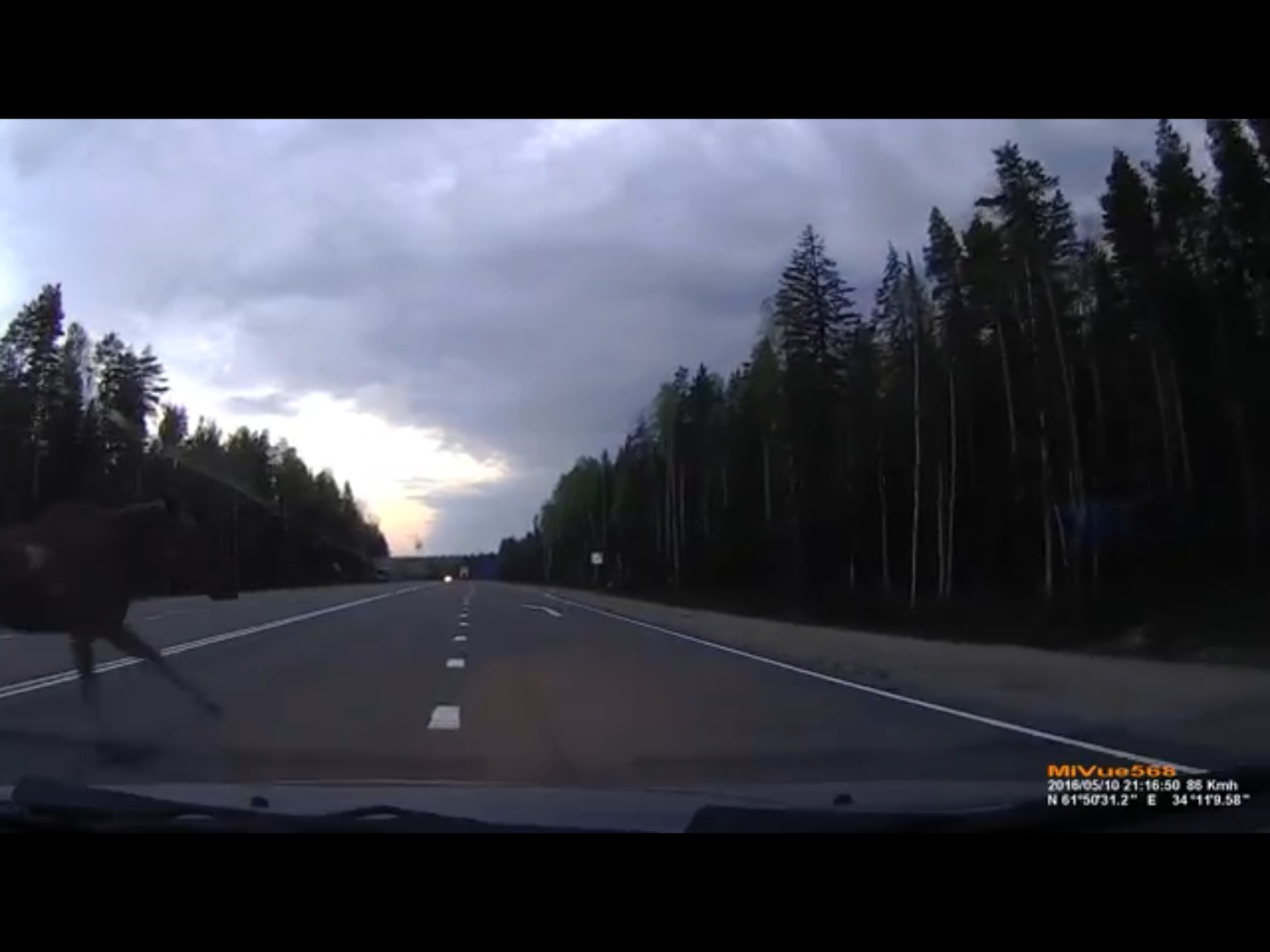 В Карелии огромный лось выскочил прямо на дорогу перед автомобилем